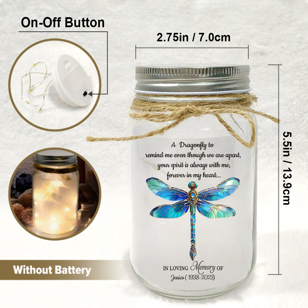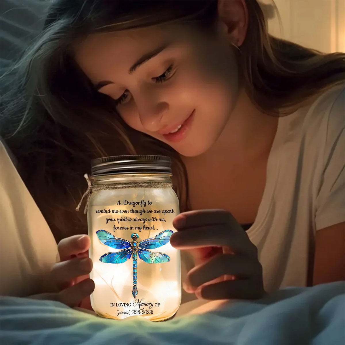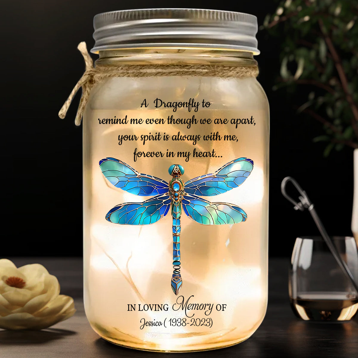 A Dragonfly To Remind Me Of You - Personalized Memorial Mason Jar Light