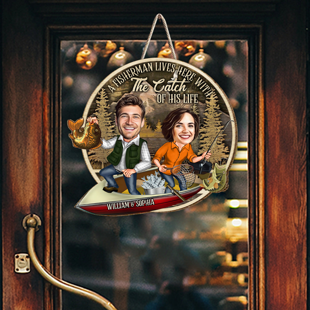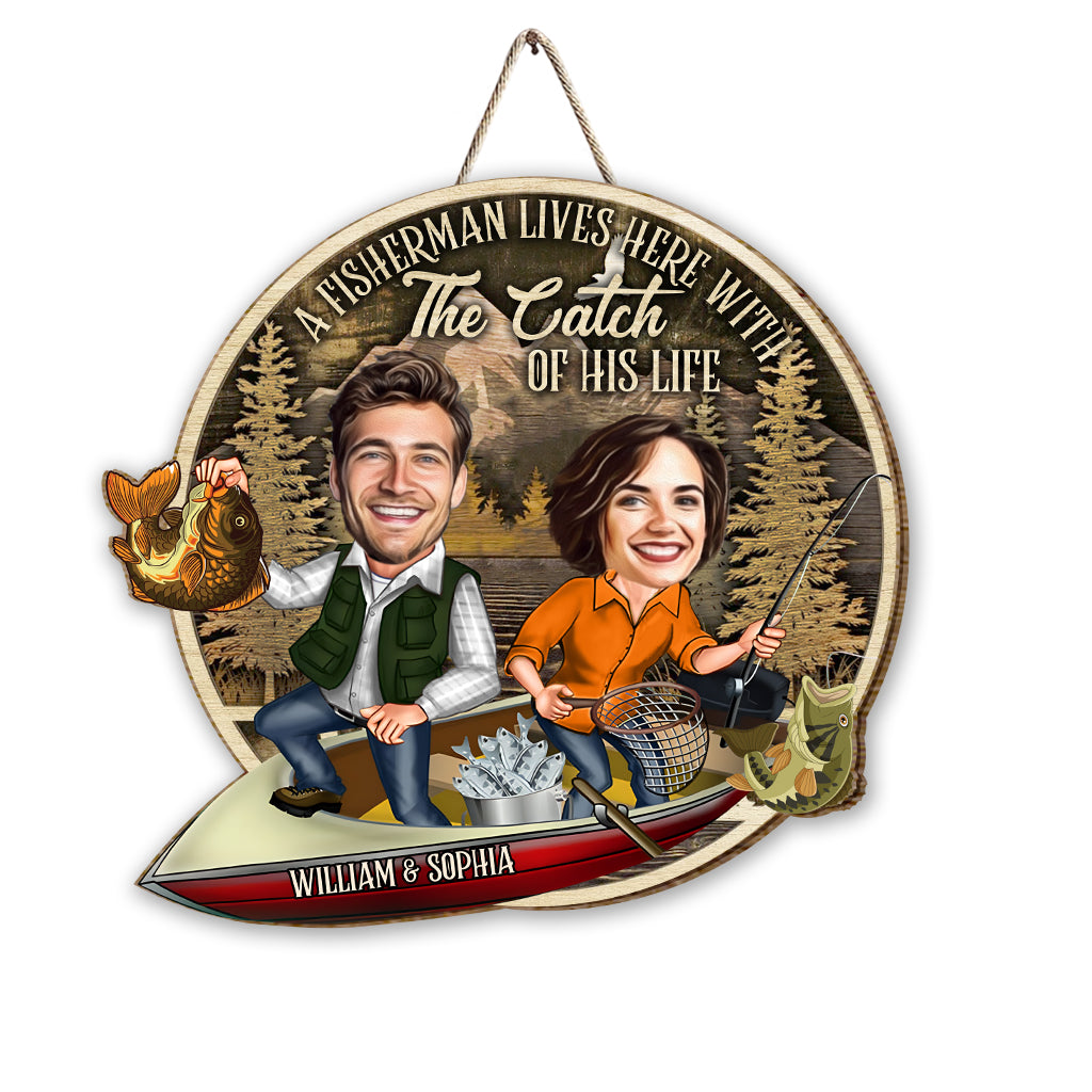 A Fisherman Lives Here With The Catch Of His Life - Personalized Fishing Wood Sign