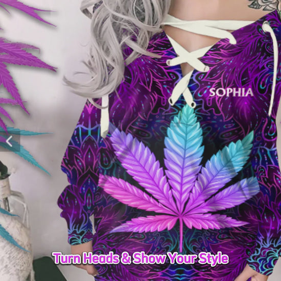 A Little High - Personalized Weed Off Shoulder Long Sleeve Dress