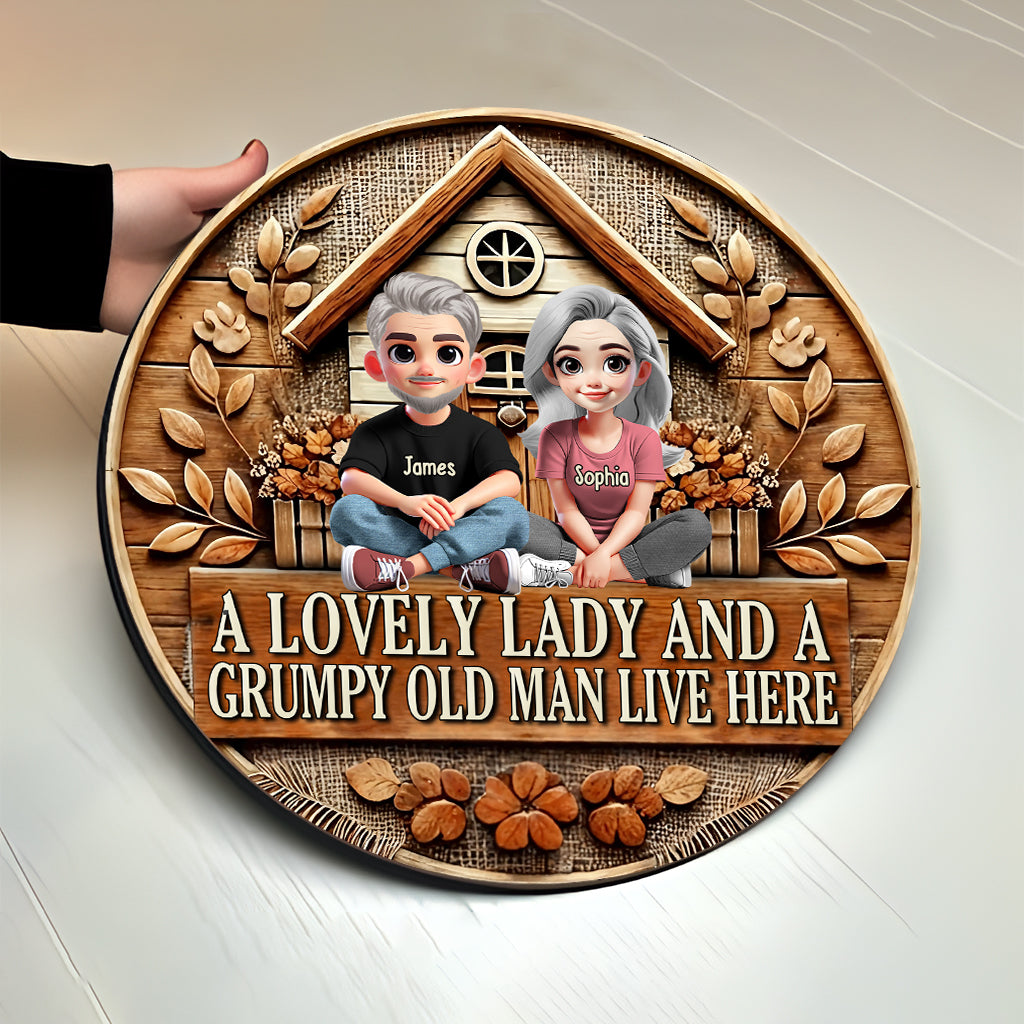 A Lovely Lady And A Grumpy Old Man Live Here - Personalized Couple Round Wood Sign