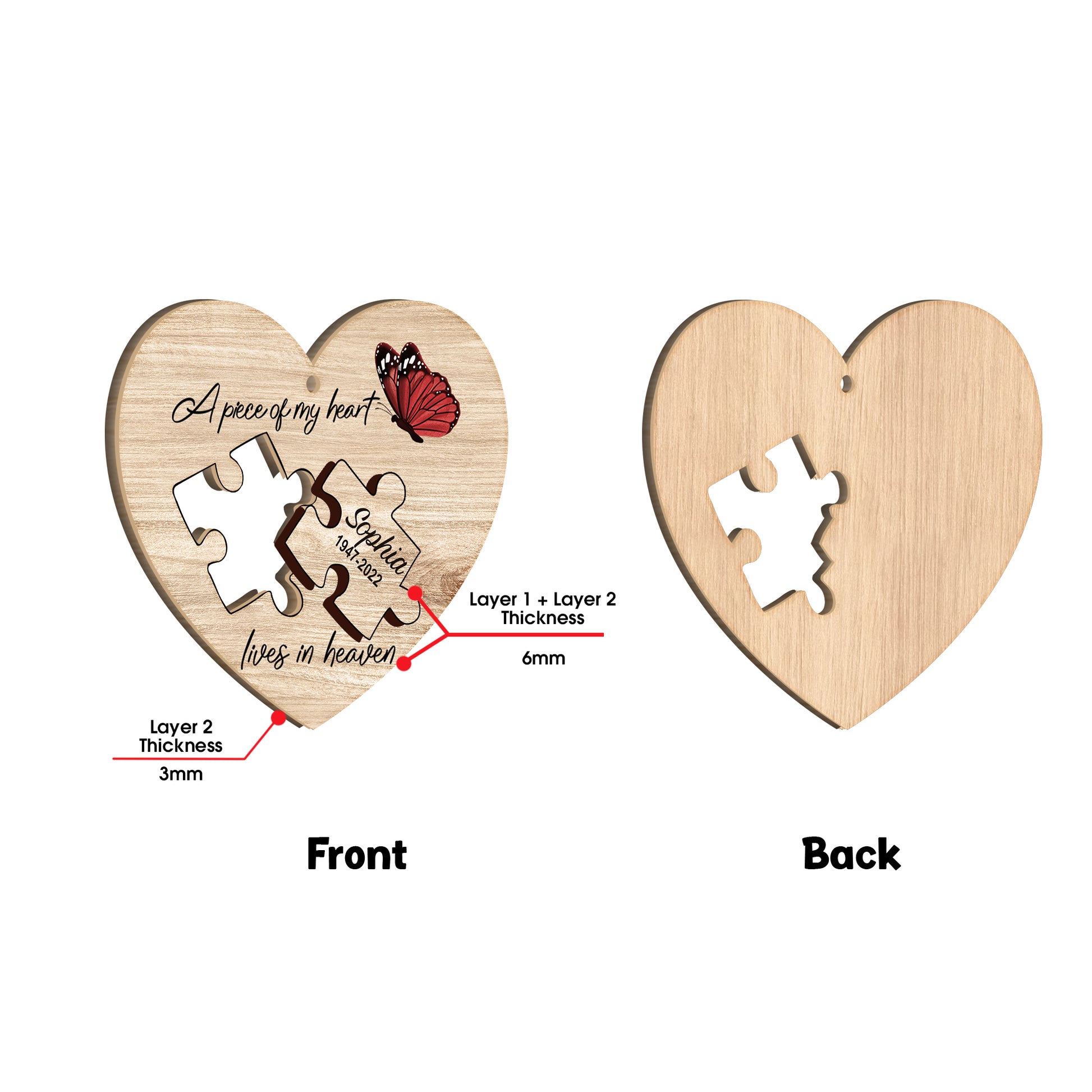 A Piece Of My Heart Lives In Heaven - Personalized Memorial 2 Layered Piece Ornament
