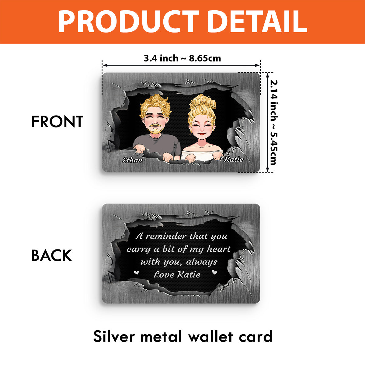 - Gift of love: Our photo wallet cards are the perfect way to tell that special someone how much they mean to you! The personalized message and photo will be etched into an aluminium card, which is about the size of a credit card. It’s a unique and meaningful present your partner or spouse can take with them wherever they go. Make it even more memorable with heartfelt words, inside jokes, lyrics from songs, or whatever other ideas you have! Imagine their face when they open up their wallet and discover this happy surprise waiting for them. This will surely bring smiles all around.