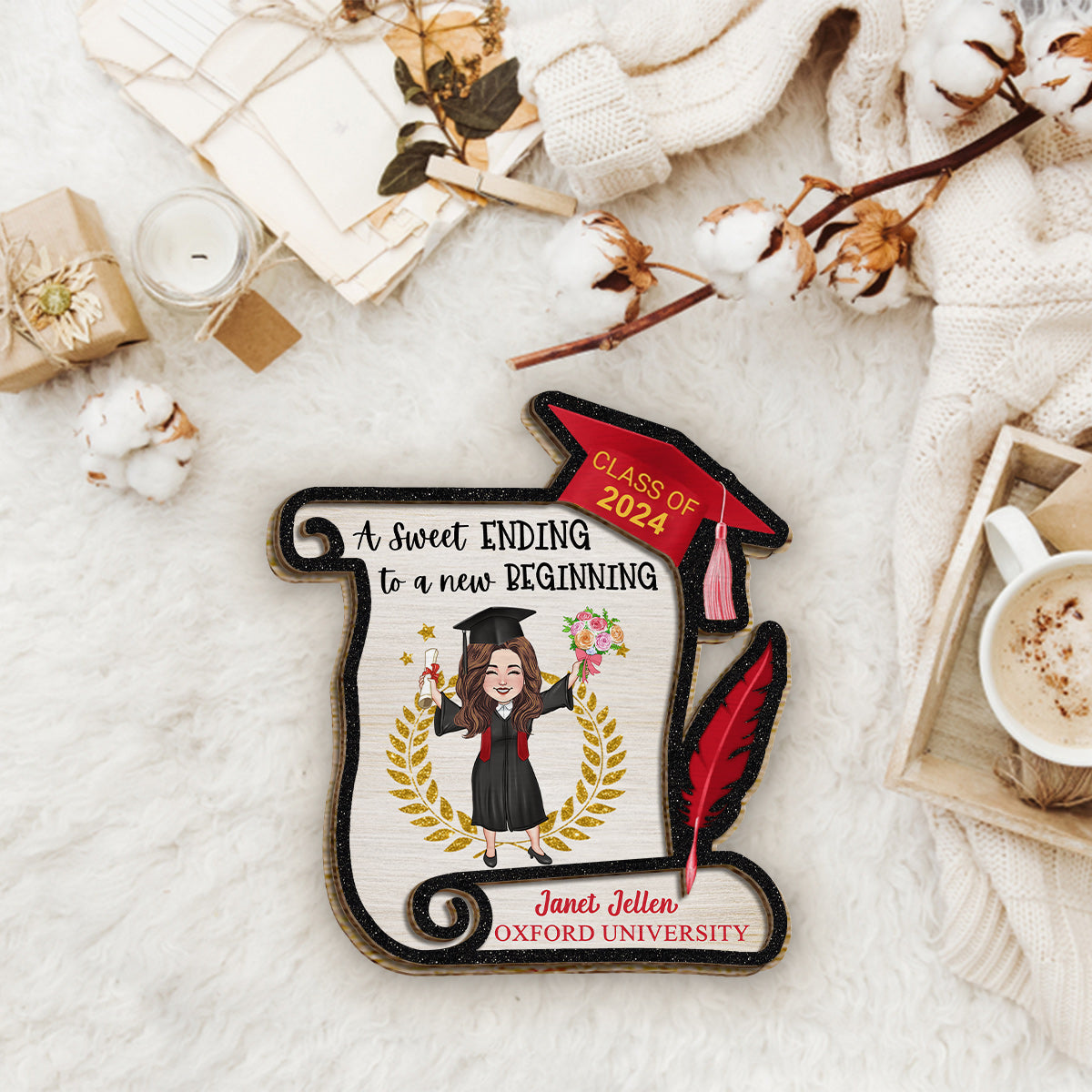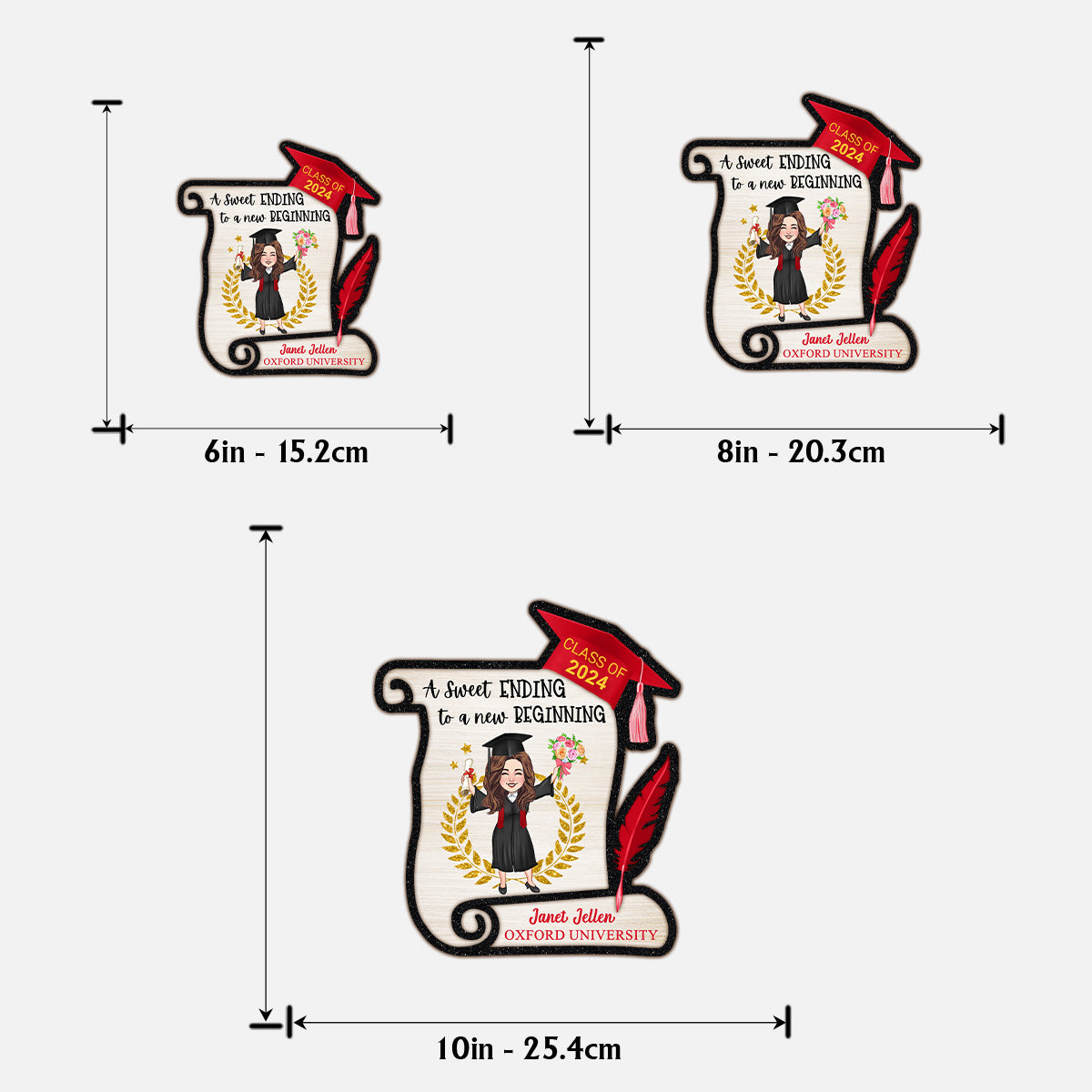A Sweet Ending To A New Begining - Personalized Graduation 2 Layered Wood Sign / Wood Plaque