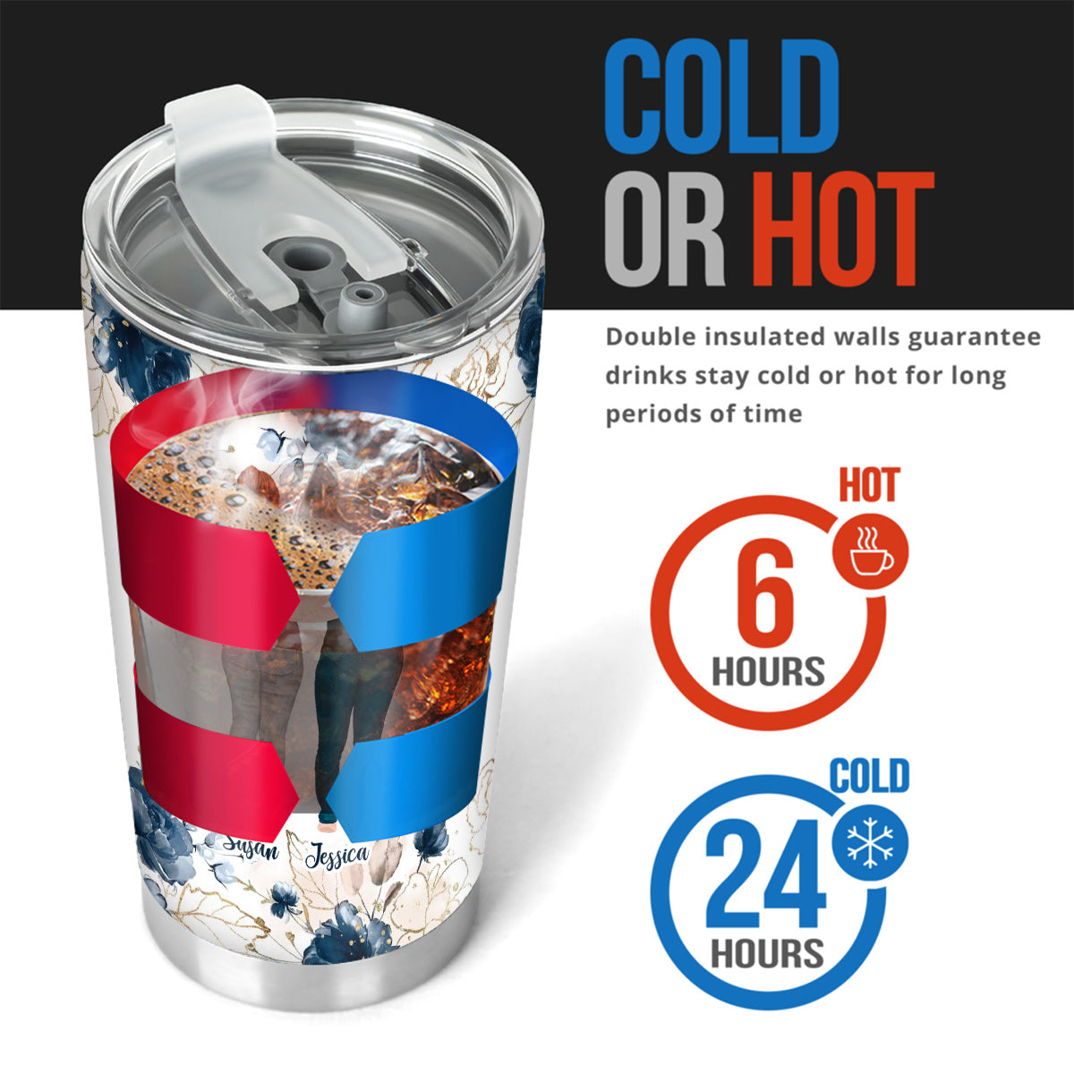 - Constructed with medical-grade stainless steel and double-walled vacuum insulation to keep your beverages hot or cold all day.