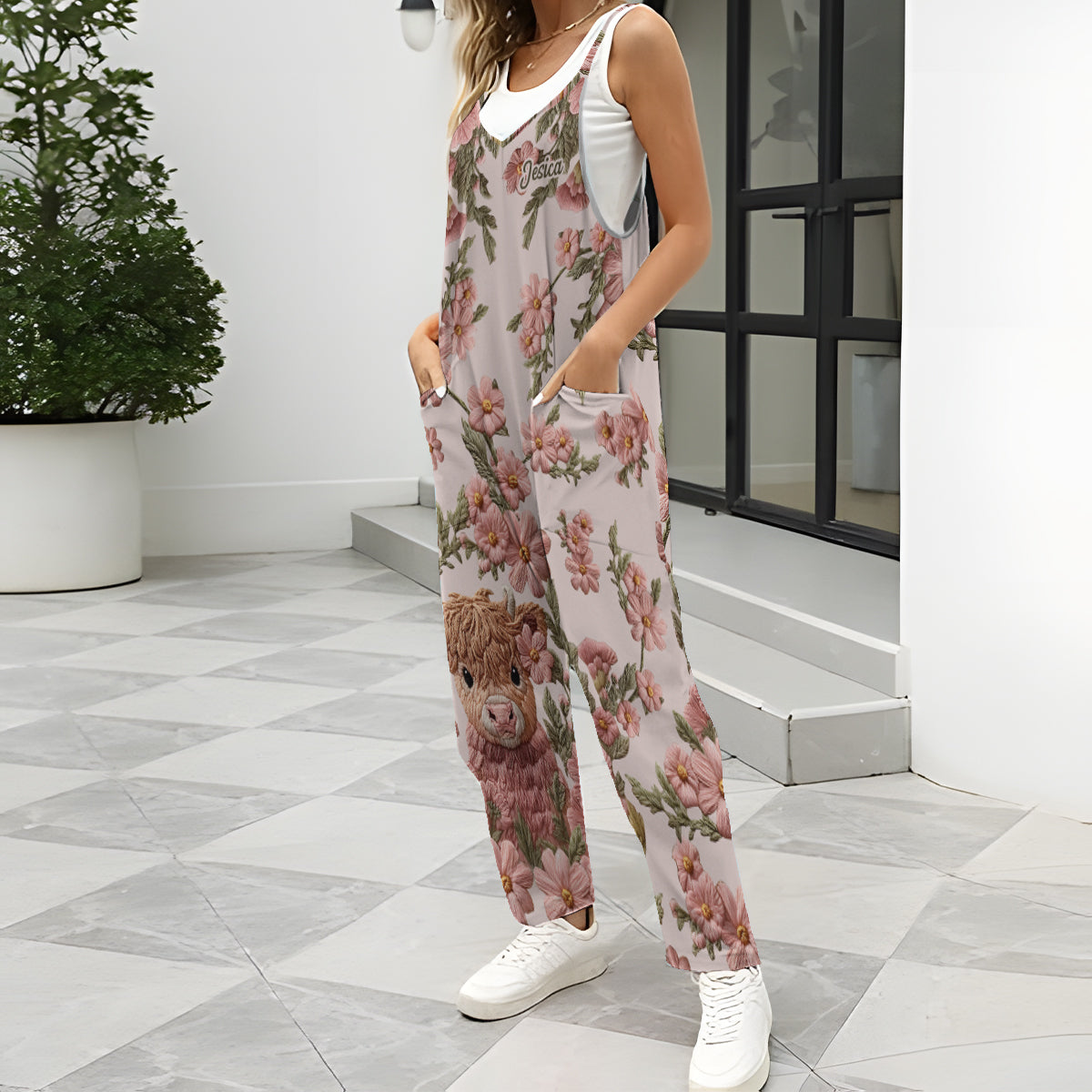 Adorable Highland Cow - Personalized Highland Cow Loose-Fit Overalls/ Rompers