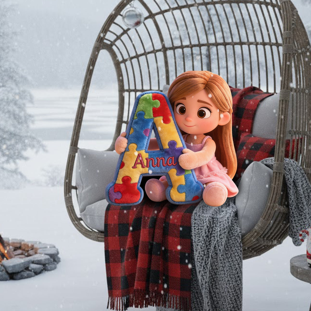 Alphabet Puzzle - Personalized Autism Awareness Faux Fur Shaped Pillow