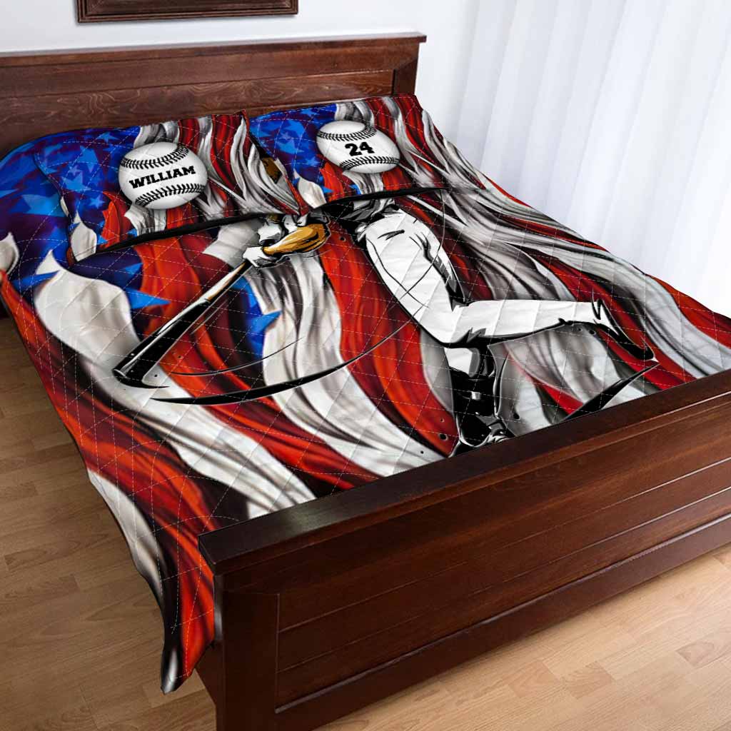 American Baseball Player - Personalized Quilt Set
