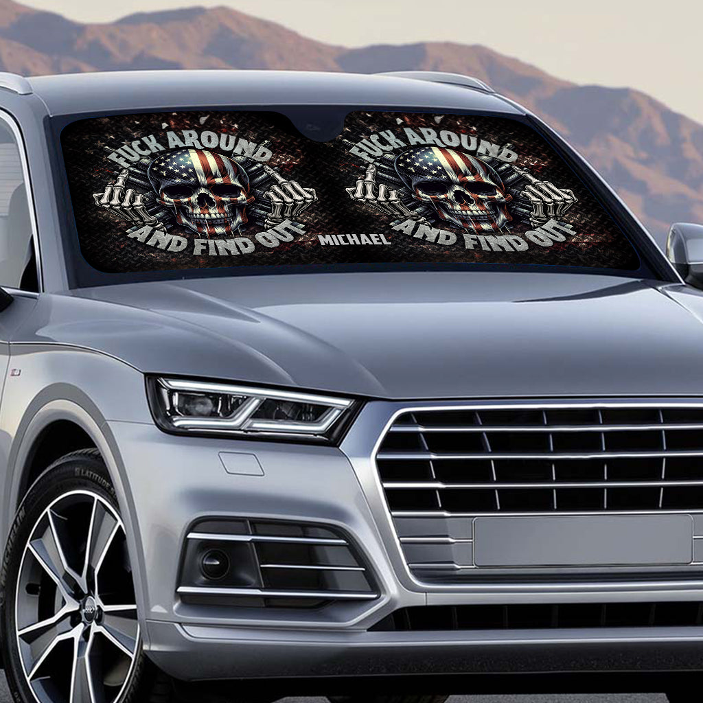 American Flag Skeleton - Personalized Skull Car Sunshade