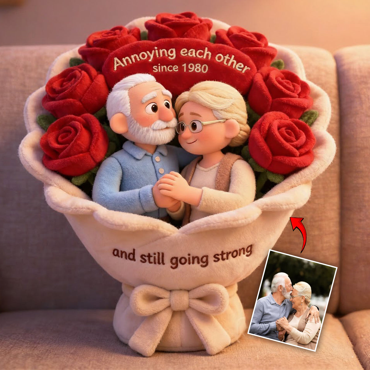 Annoying each other - Personalized Couple Faux Fur Shaped Pillow