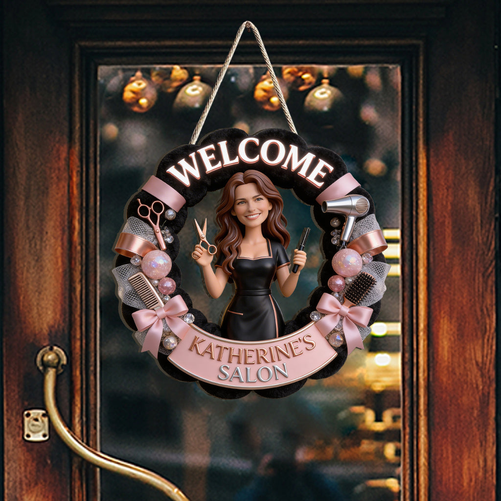 Any Photo Hair Salon Welcome Sign - Personalized Hairdresser Custom Shaped Wood Sign