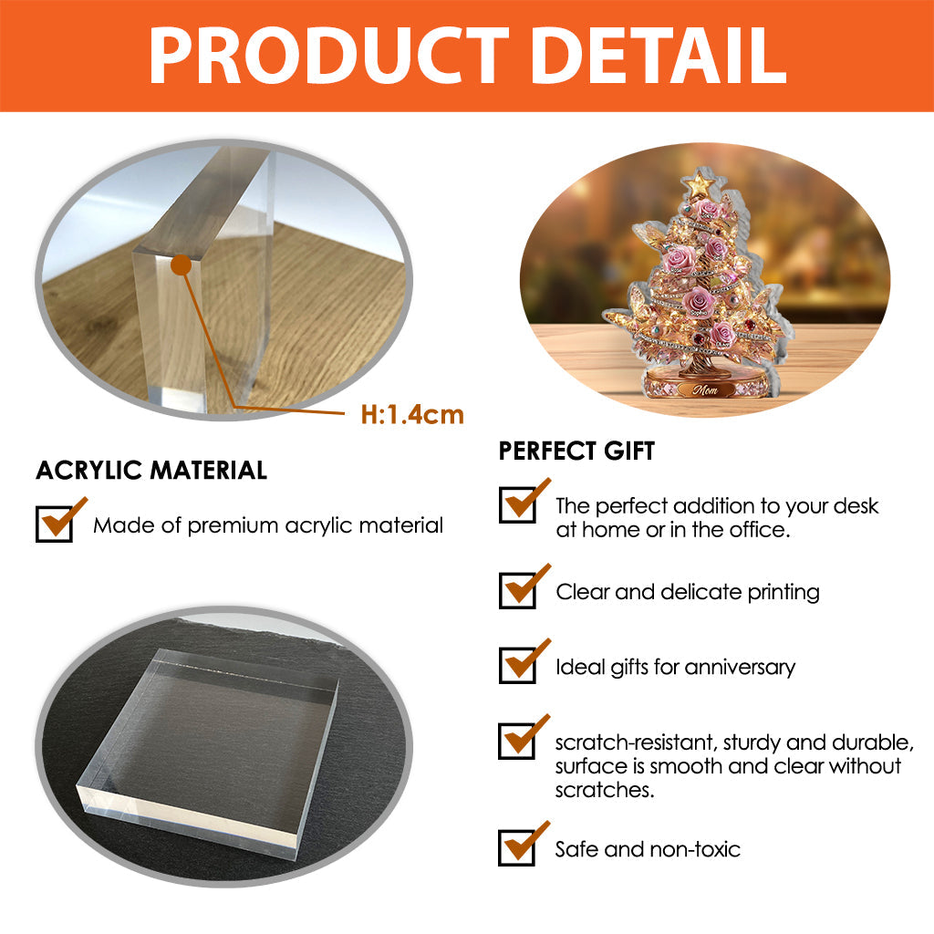 Beautiful Rose Christmas Tree, A Perfect Christmas Gift for Mom - Personalized Mother Custom Shaped Acrylic Plaque