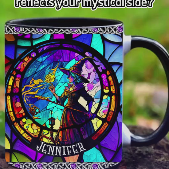 Beautiful Stained Glass Witch - Personalized Witch Accent Mug