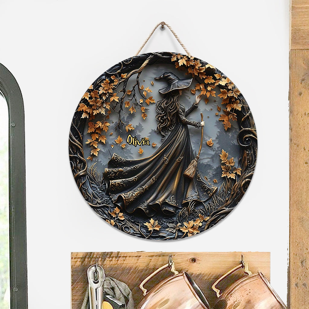 Beautiful Witch - Personalized Witch Round Wood Sign