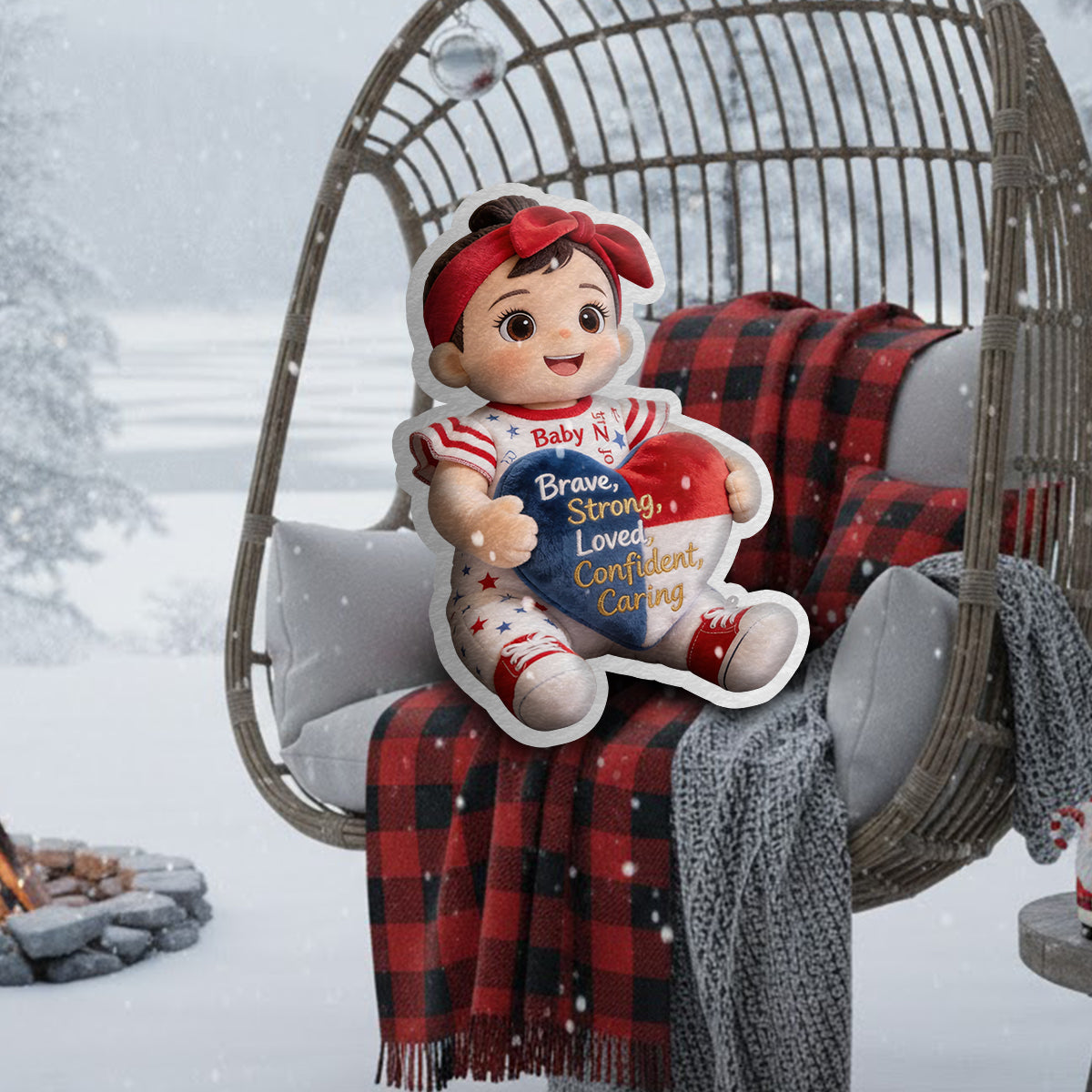 Brave, Strong, Loved - Affirmations Gift - Personalized Kid Faux Fur Shaped Pillow
