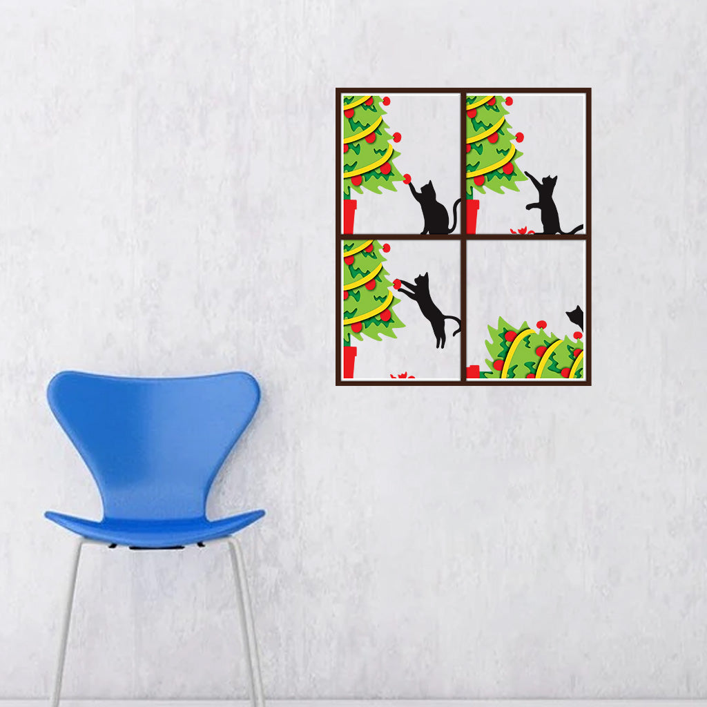 Cat Knock Over Christmas Tree - Personalized Black Cat Decal Full