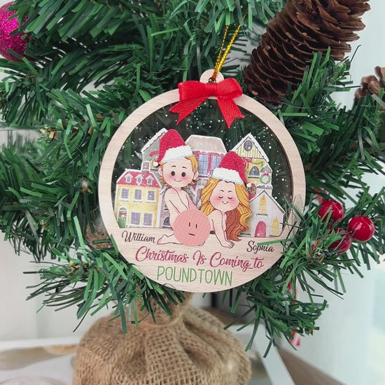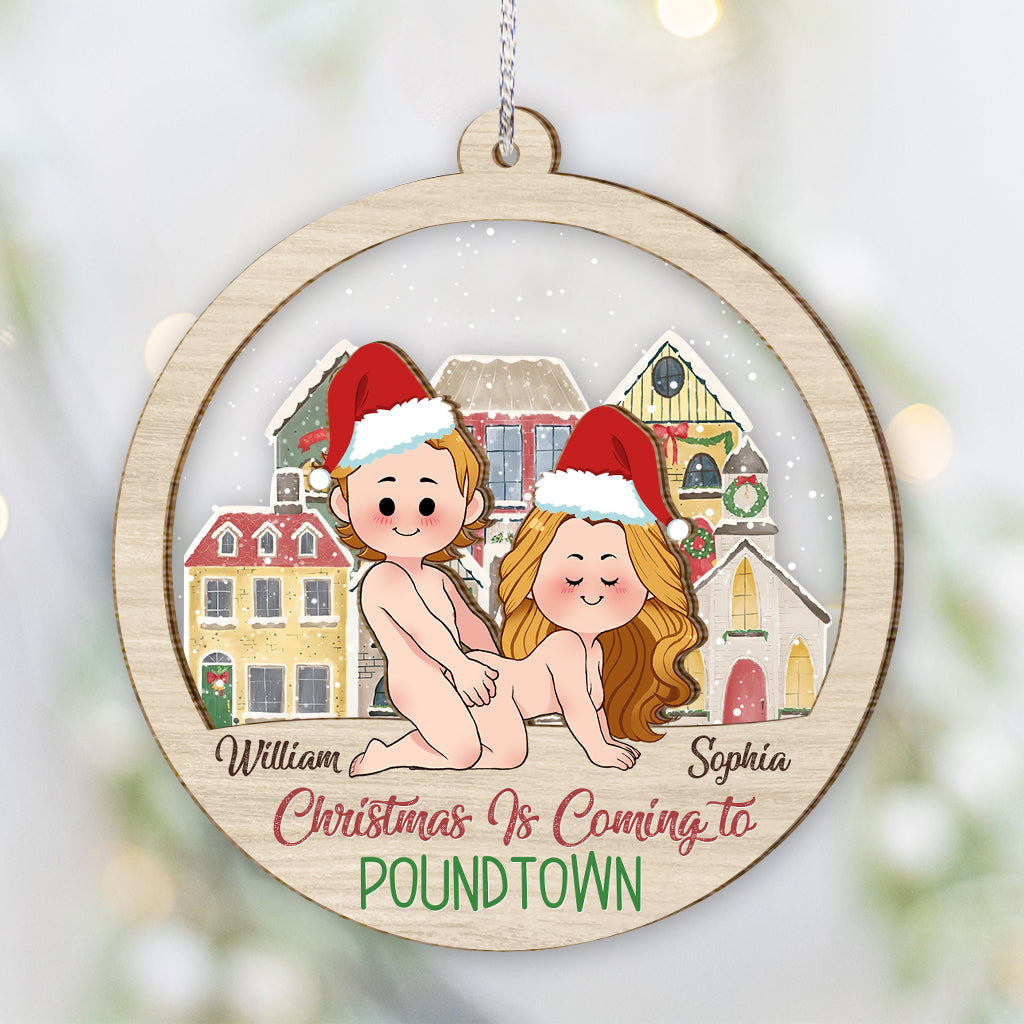 Christmas is Coming to Poundtown - Personalized Couple Layers Mix Ornament