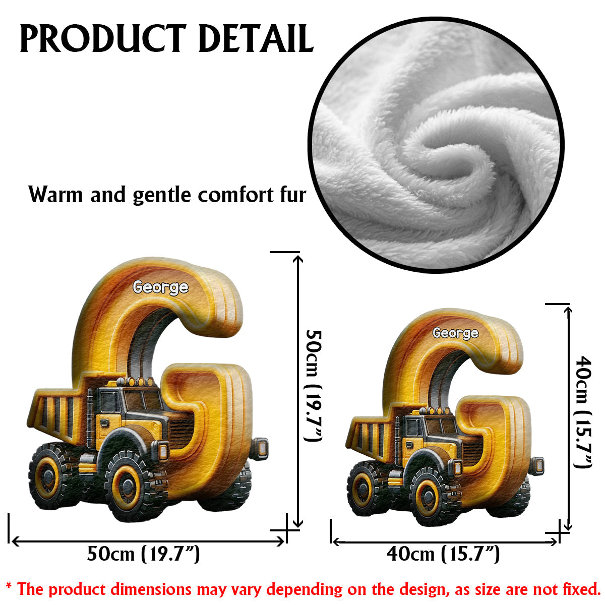 Cool Contruction - Personalized Kid Faux Fur Shaped Pillow
