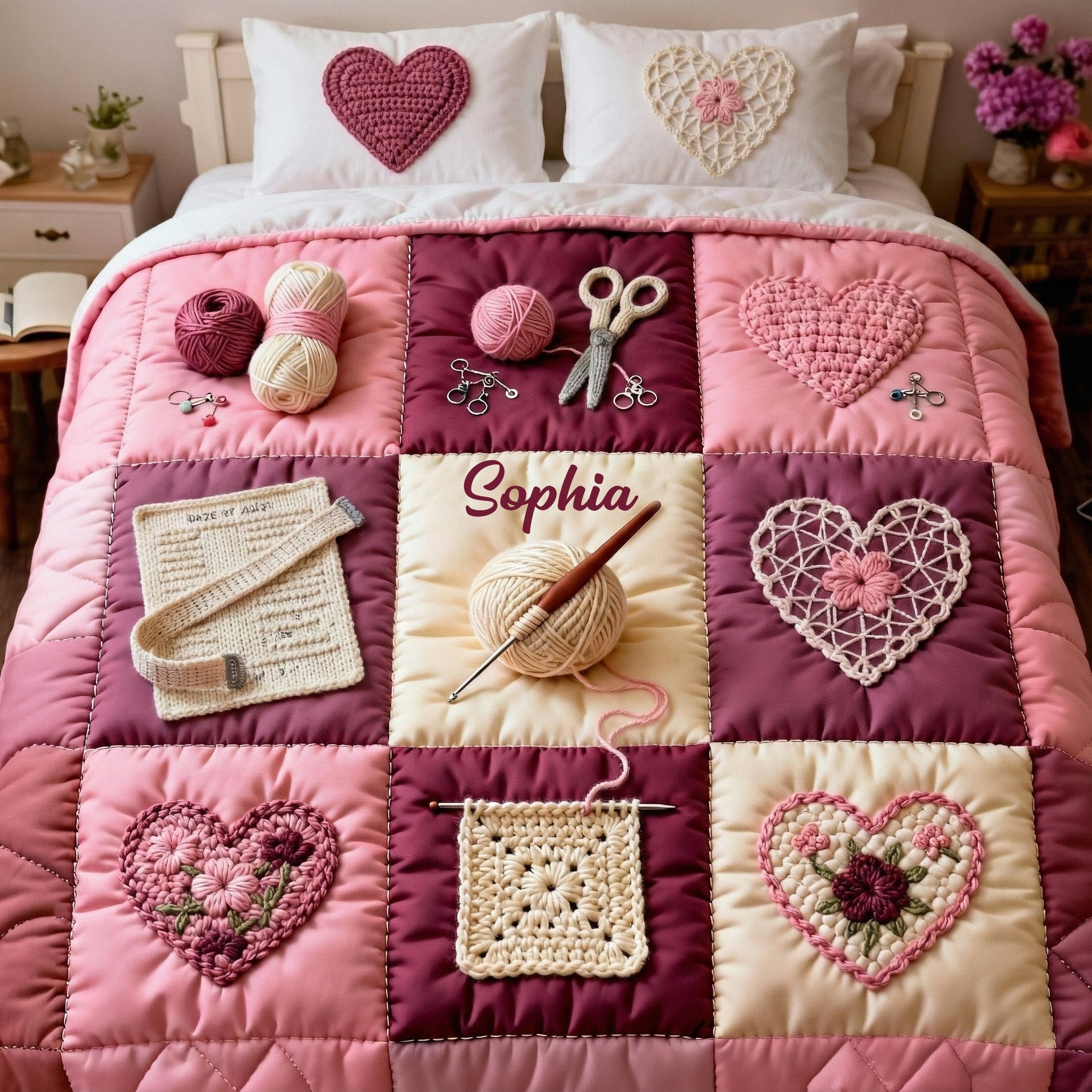 Crochet Heart - Personalized Crocheting Bedding Set