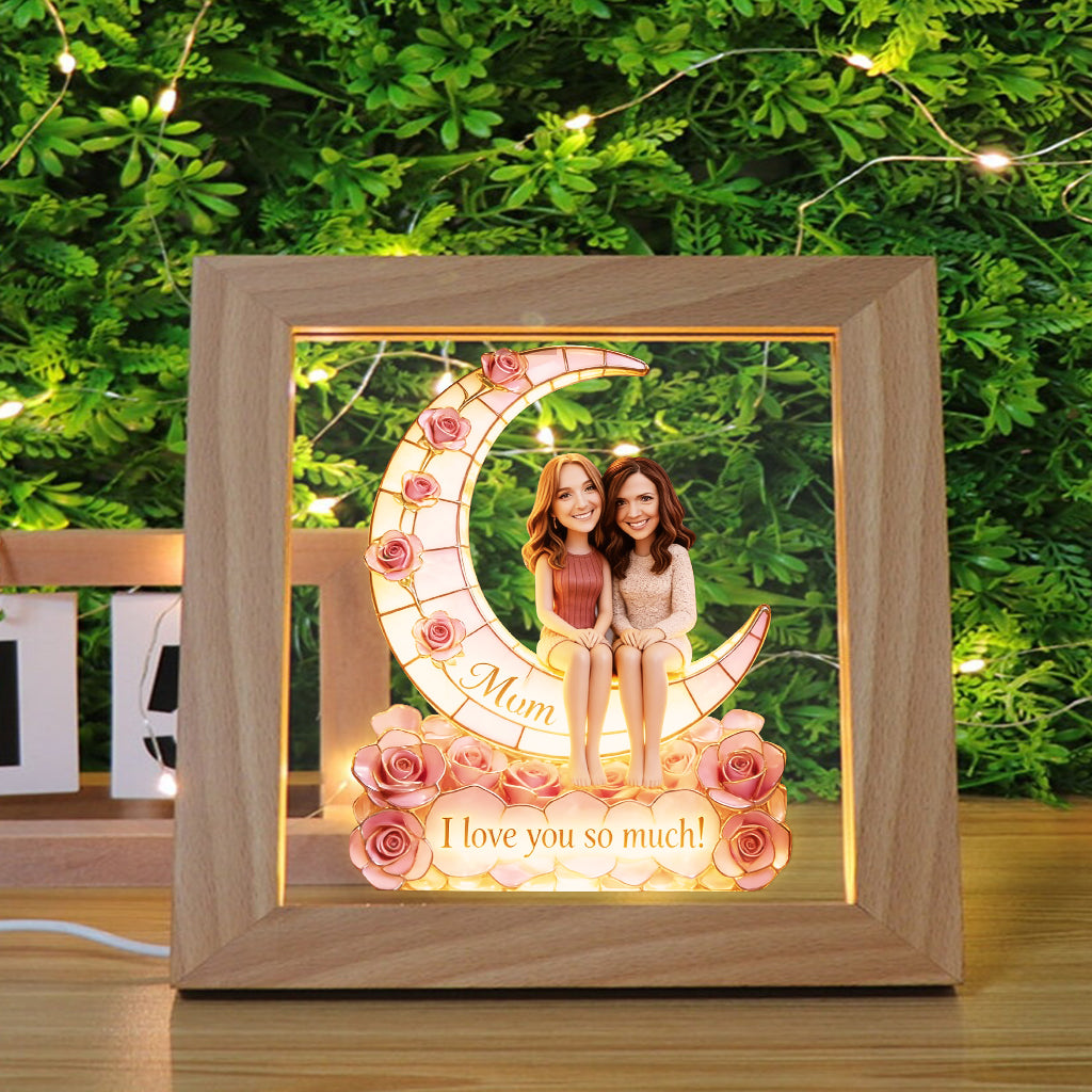 Custom Any Photo Love Mom, Grandma To The Moon - Personalized Mother Wooden Frame LED Light