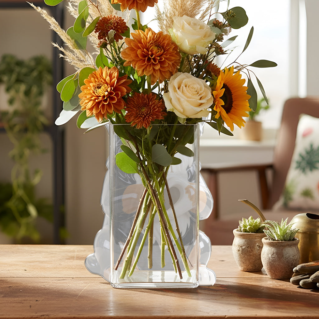 The front acrylic panel is printed on one side with vivid, high-quality colors, adding depth and personality while keeping a clean, modern look. The pot’s height and proportions make it suitable for small plants, fresh flowers, dried arrangements, or artificial bouquets, making it a flexible décor piece for homes, offices, or gift-giving.