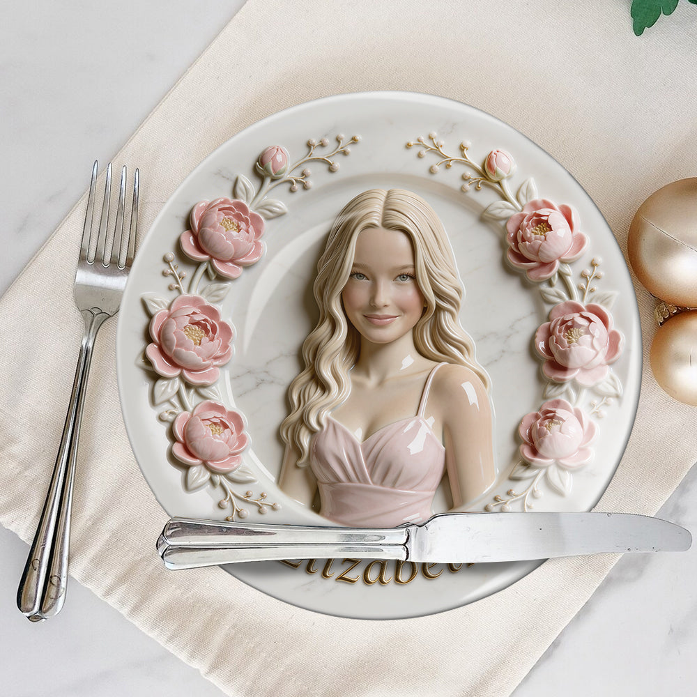 Custom Any Photo - Personalized Birth Month Flower Ceramic Round Plate