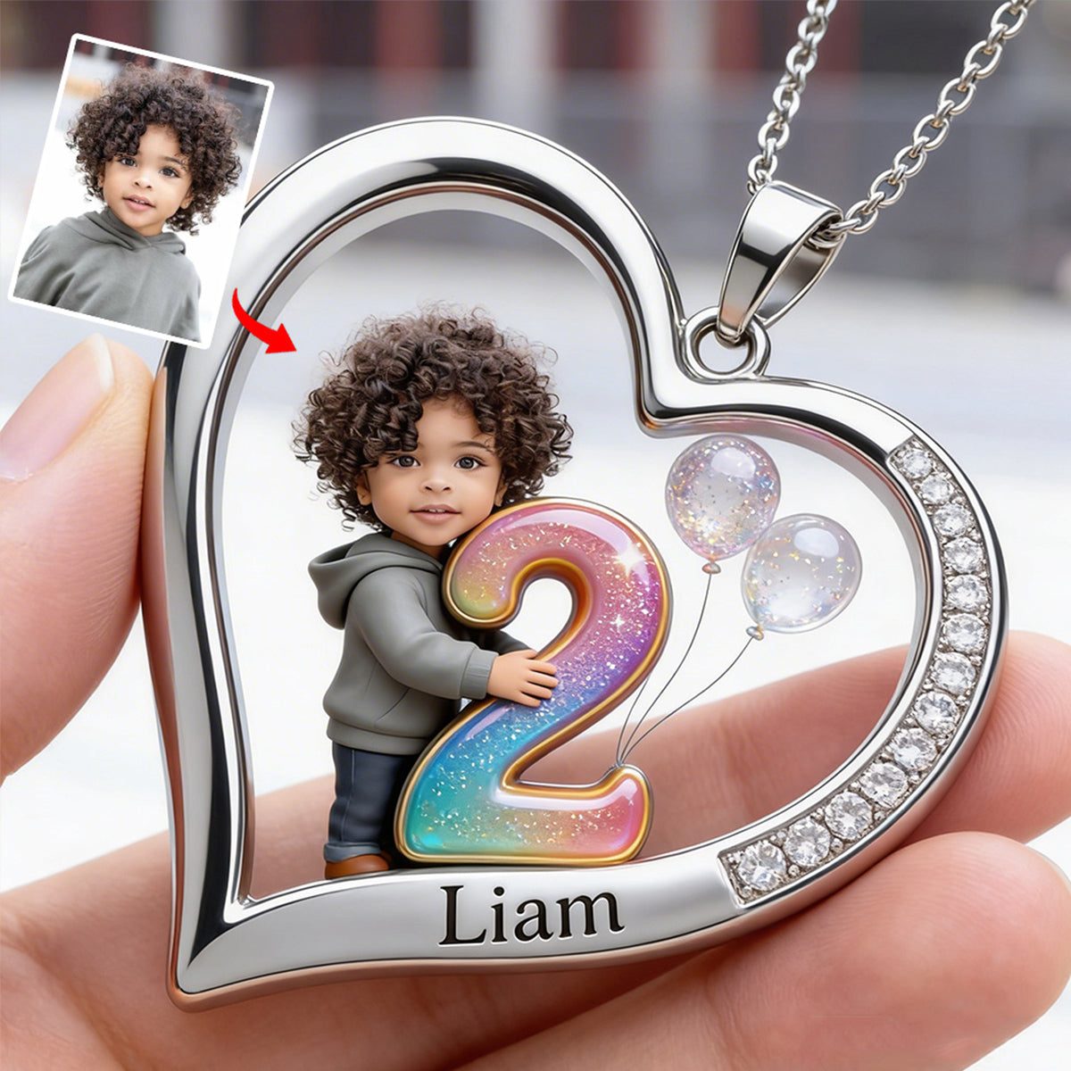 Custom Any Photo - Personalized Kid Shaped Metal Pendant Necklace