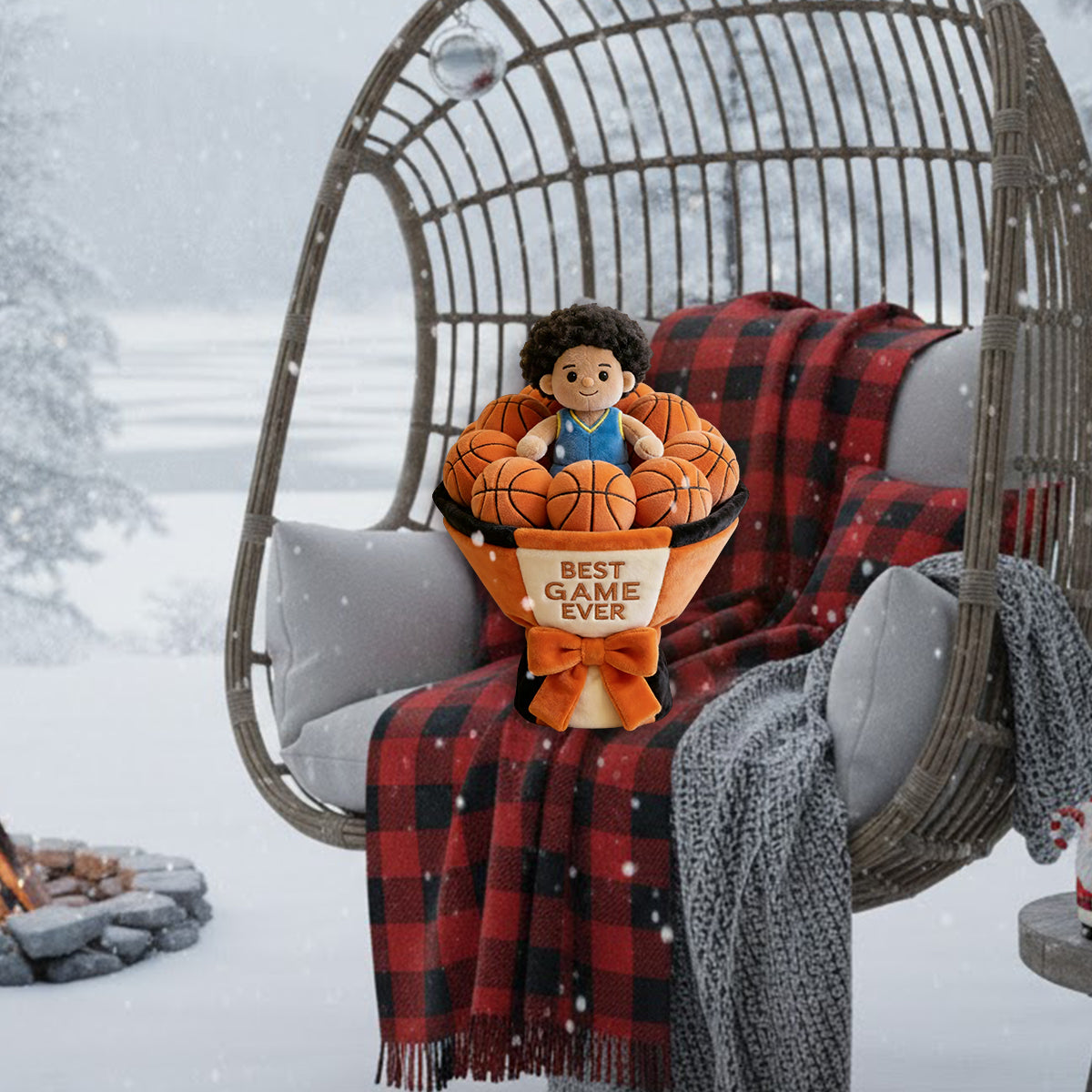 Custom Basketball Plush Bouquet - Personalized Basketball Premium Faux Fur Pillow