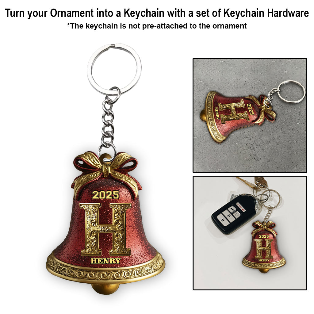 Custom Gold Bell Initial For Family, Merry Christmas 2025 - Personalized Family Ornament