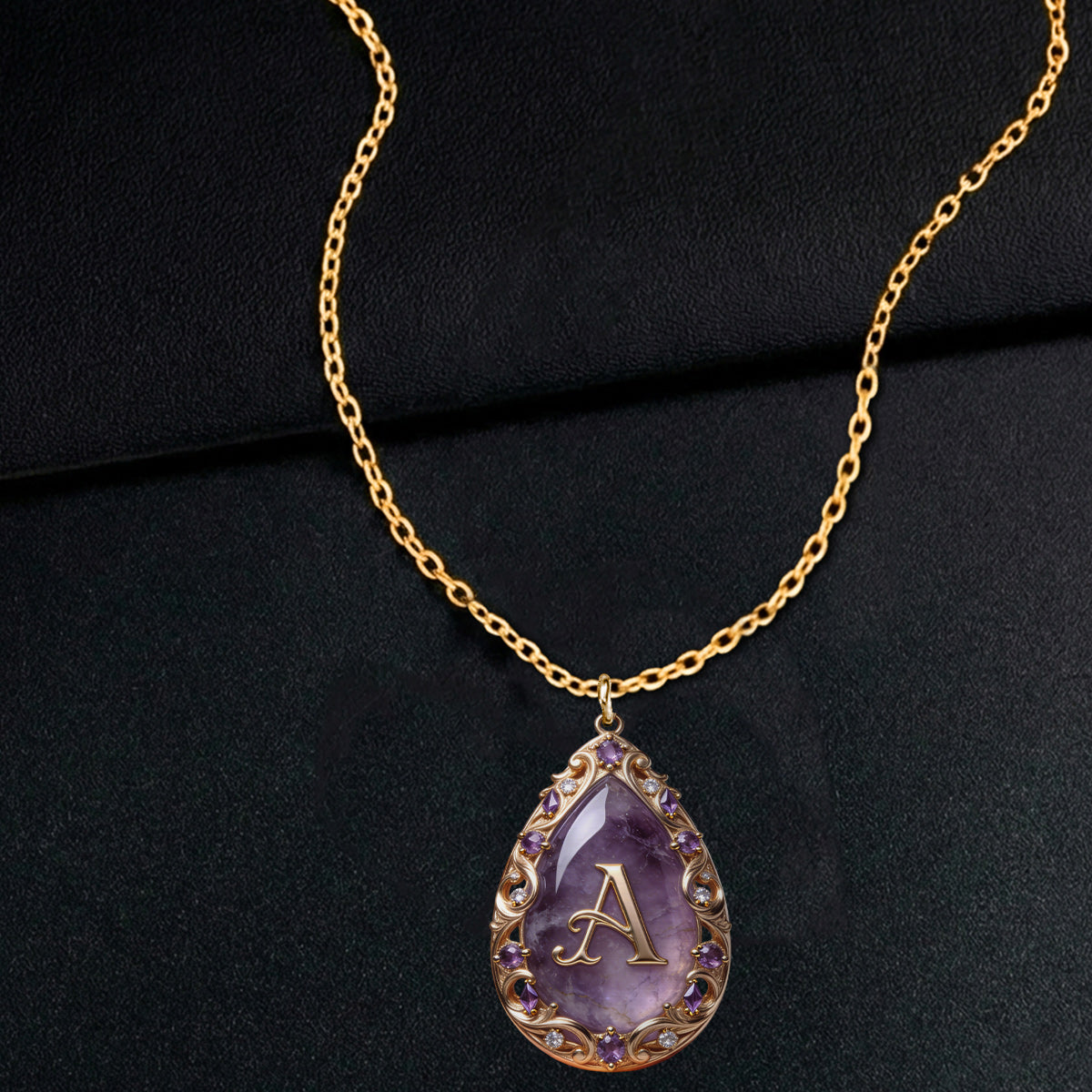 Custom Initial Name Letter Birth Stone - Personalized Birth Stone Shaped Metal Pendant Necklace
