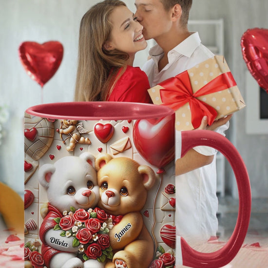 - High quality ceramic mug with two-tone rim, interior, & handle