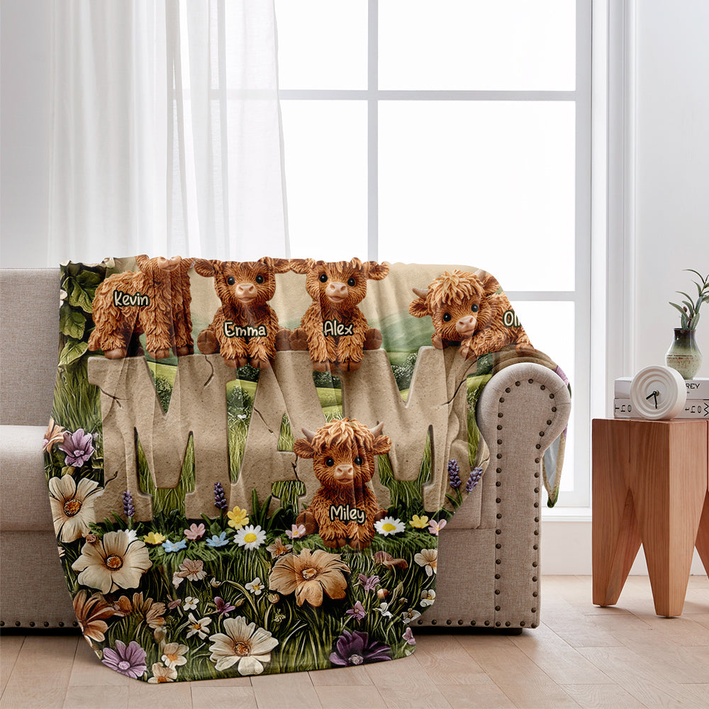 Cute Highland Cow Mama, Grandma - Personalized Mother Blanket