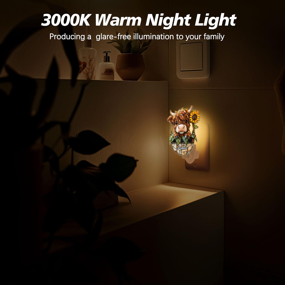 Cute Highland Cow - Personalized Highland Cow Acrylic Plug-In Night Light