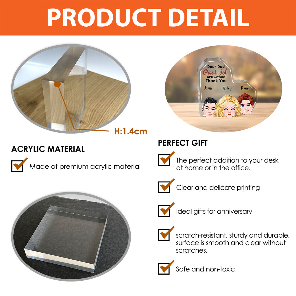Dear Dad Great Job - Personalized Father Custom Shaped Acrylic Plaque