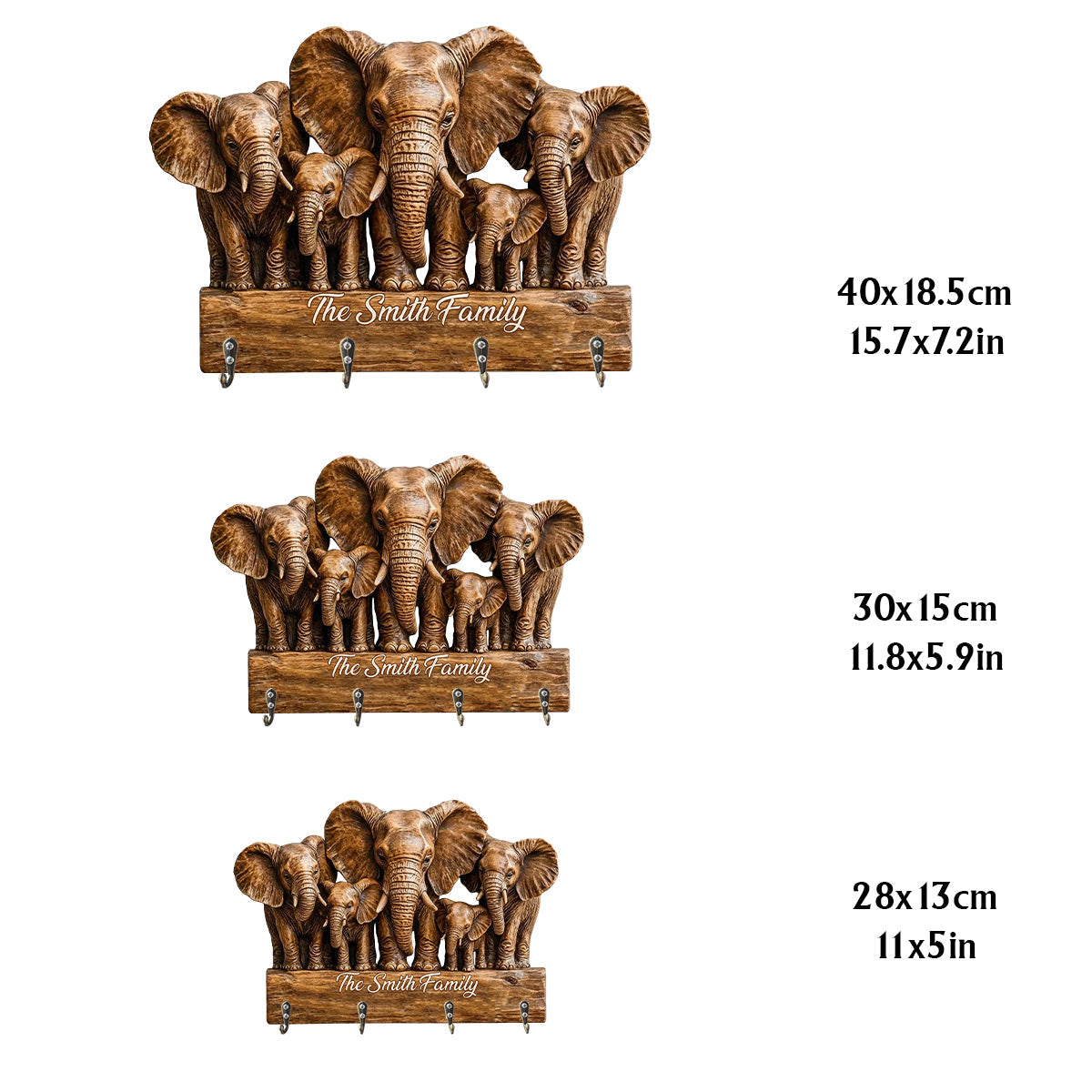 Elephant Family - Personalized Elephant Custom Shaped Hanging Rack