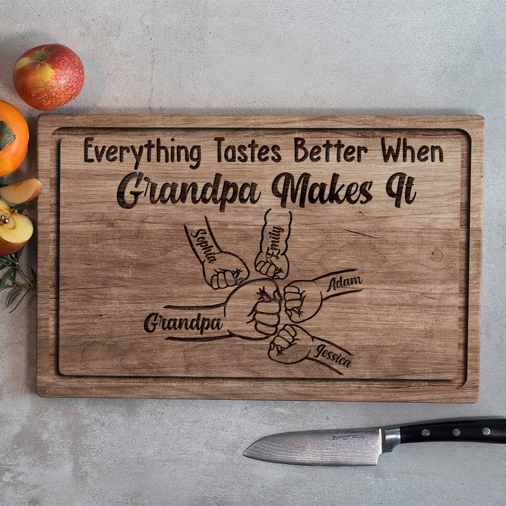 Everything Tastes Better When Grandpa Makes It - Personalized Grandpa Cutting Board