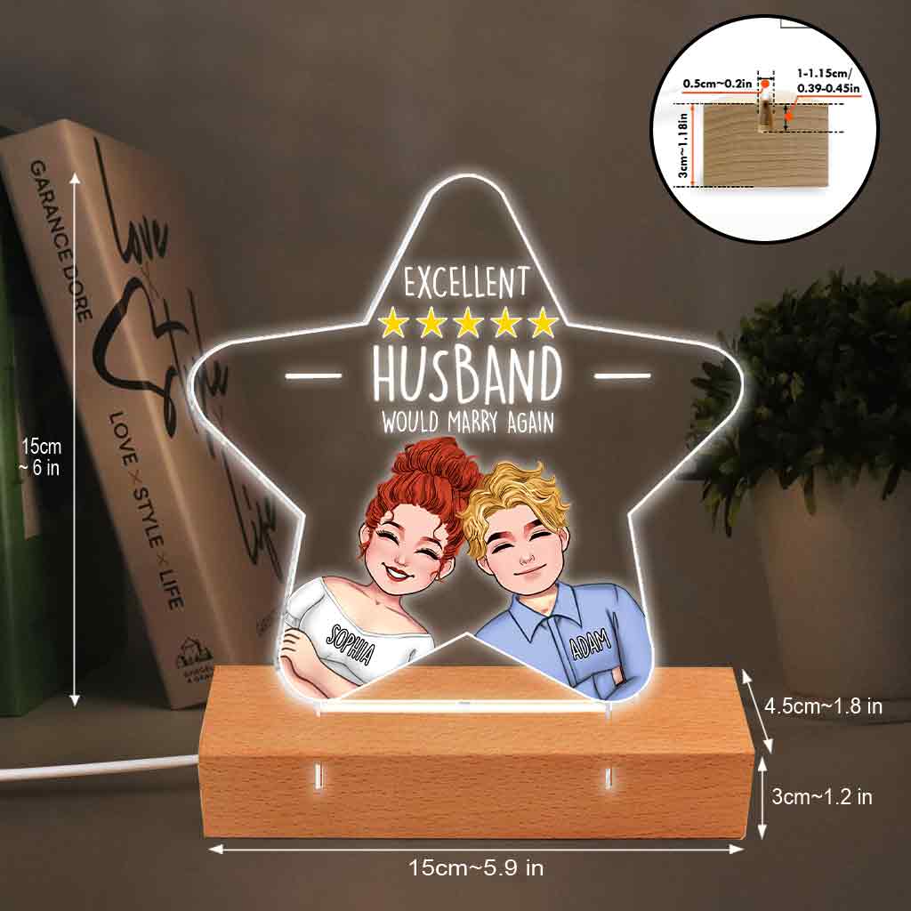 Excellent Husband Wife Five Stars - Personalized Husband And Wife Shaped Plaque Light Base