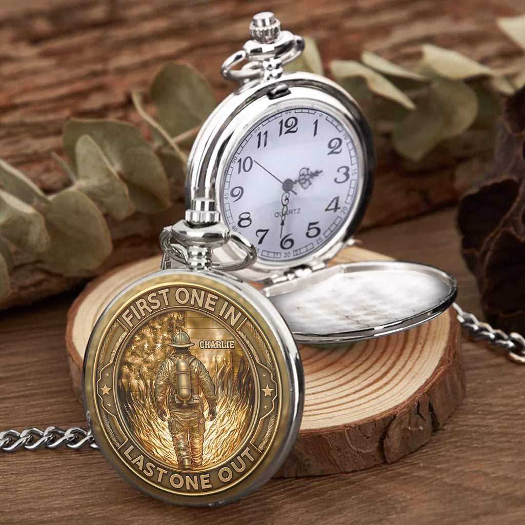 First In Last Out Fire Dept - Personalized Firefighter Pocket Watch