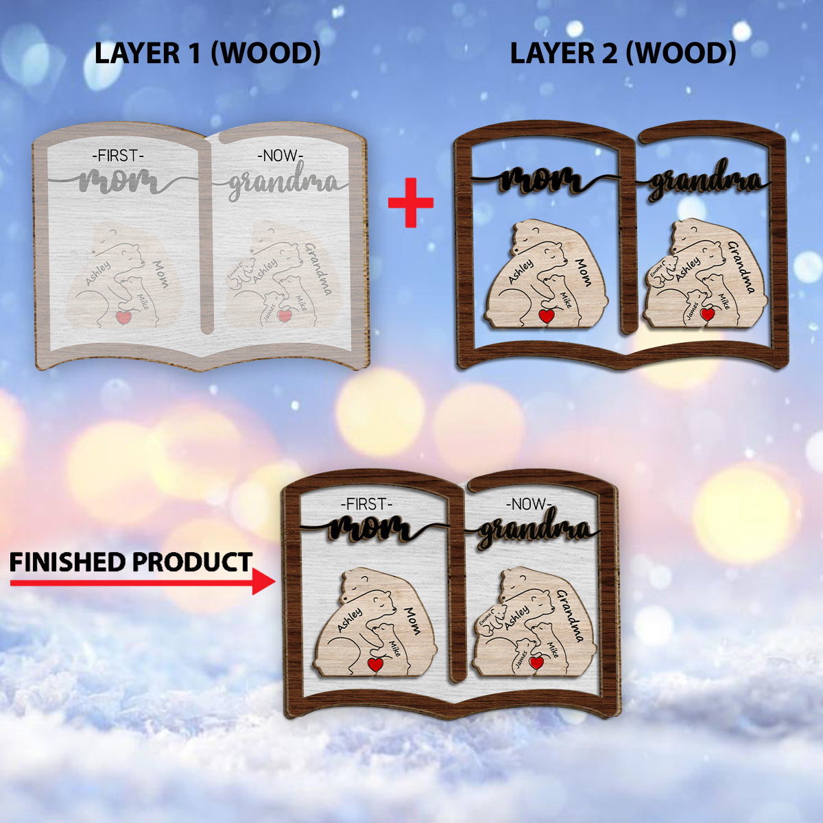 First Mom Now Grandma Bear - Personalized Grandma 2 Layered Wood Sign / Wood Plaque
