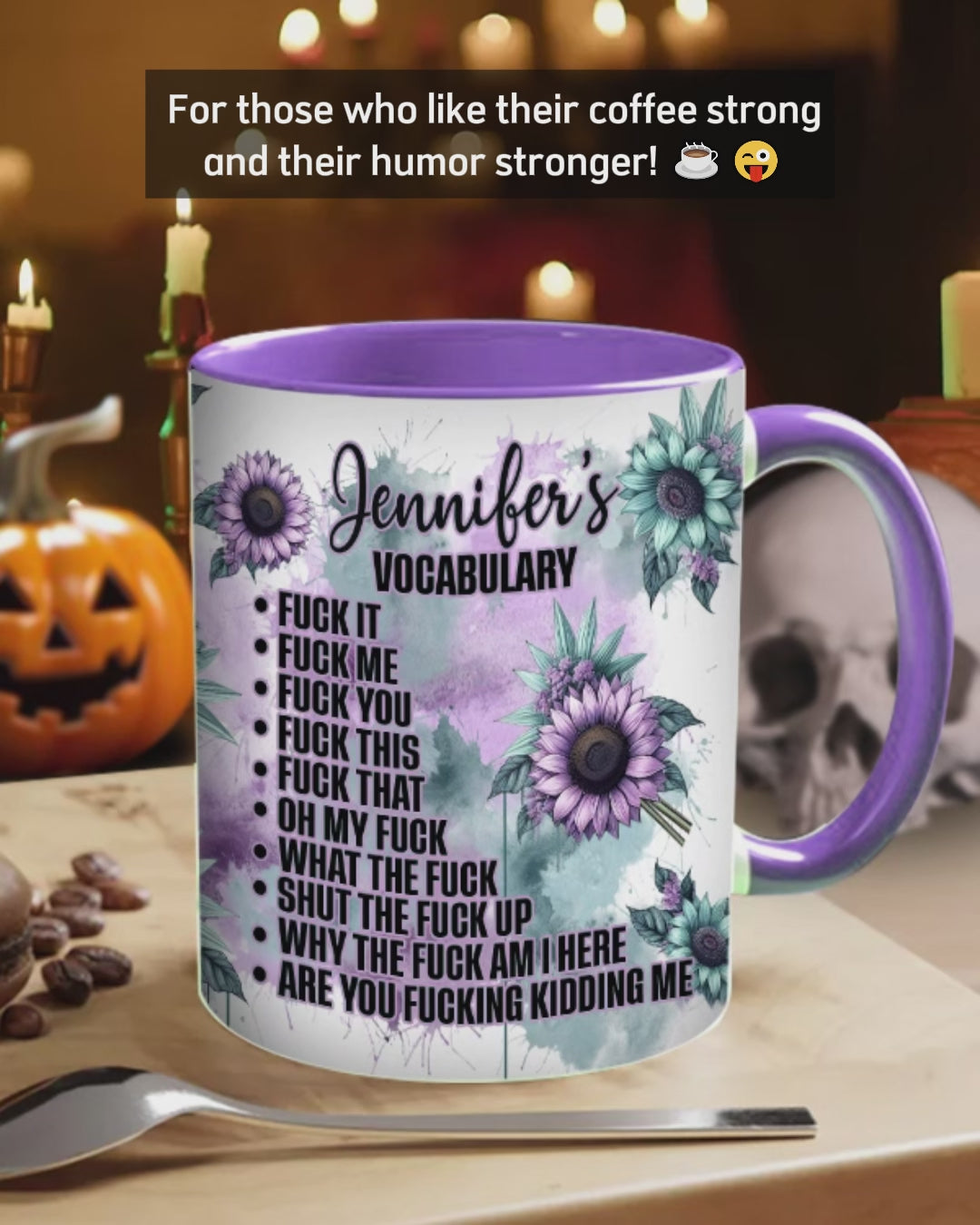 • High quality ceramic mug with two-tone rim, interior, & handle