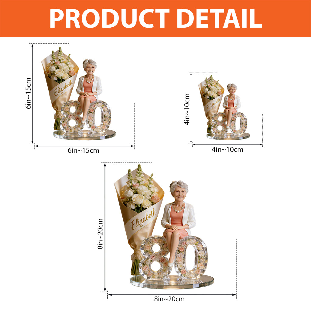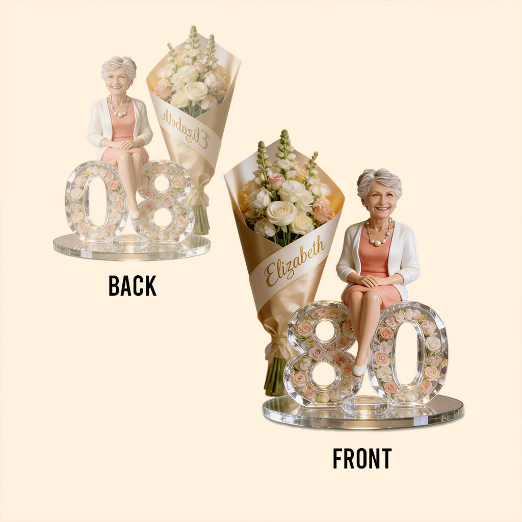 Gift For Her - Flower Bouquet And Number - Personalized Birthday Custom Shaped Acrylic Plaque