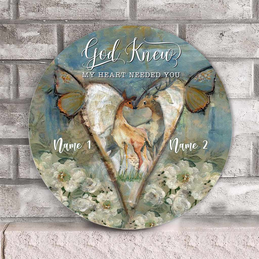 God Knew My Heart - Personalized Couple Hunting Round Wood Sign