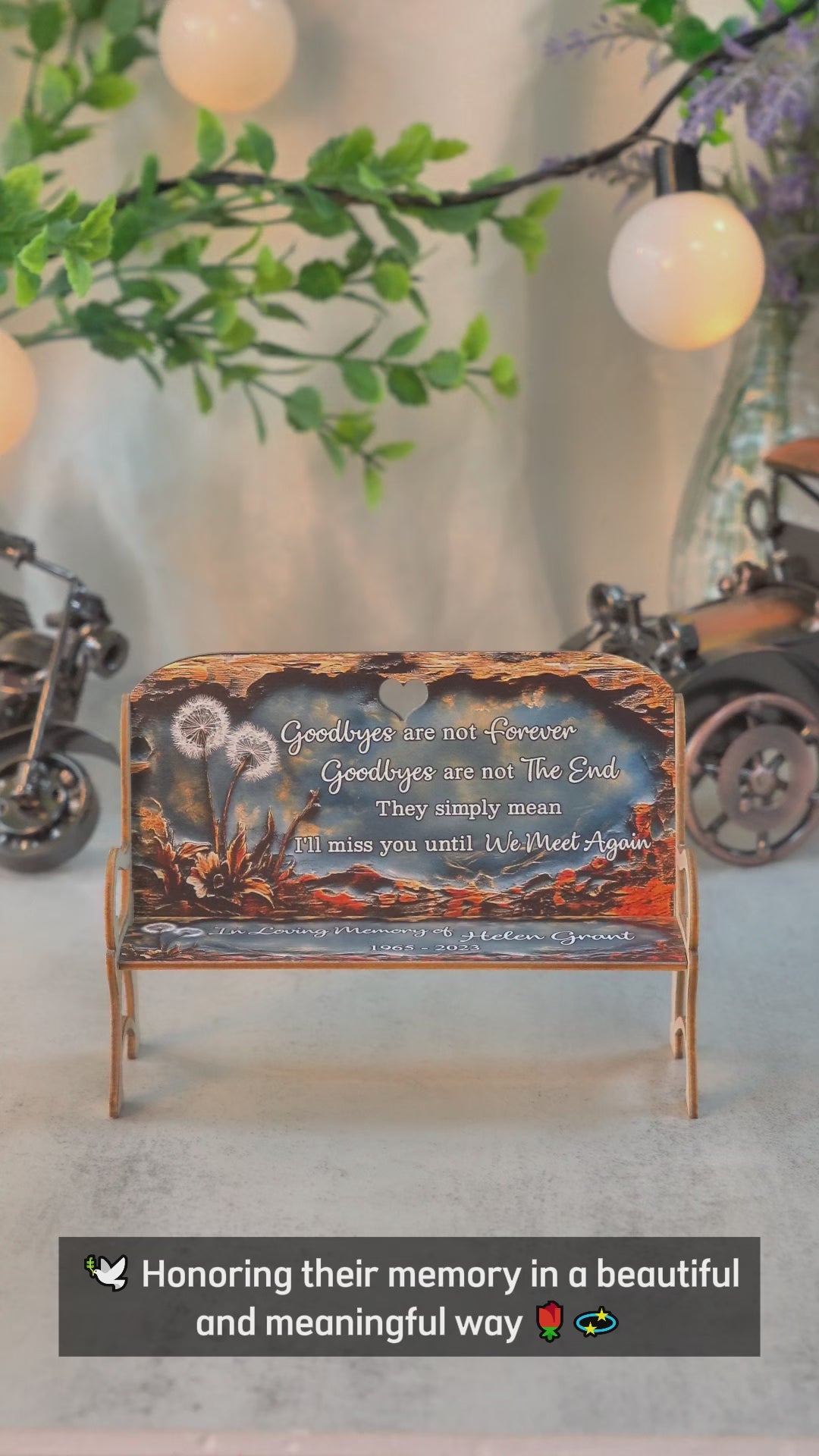 - This bench is a heartfelt and meaningful gift for a family who has lost a loved one. You can customize it with a photo of your loved one and a touching quote. It can be placed on a shelf, desk, fireplace, or any other spot in your home where you want to remember them.