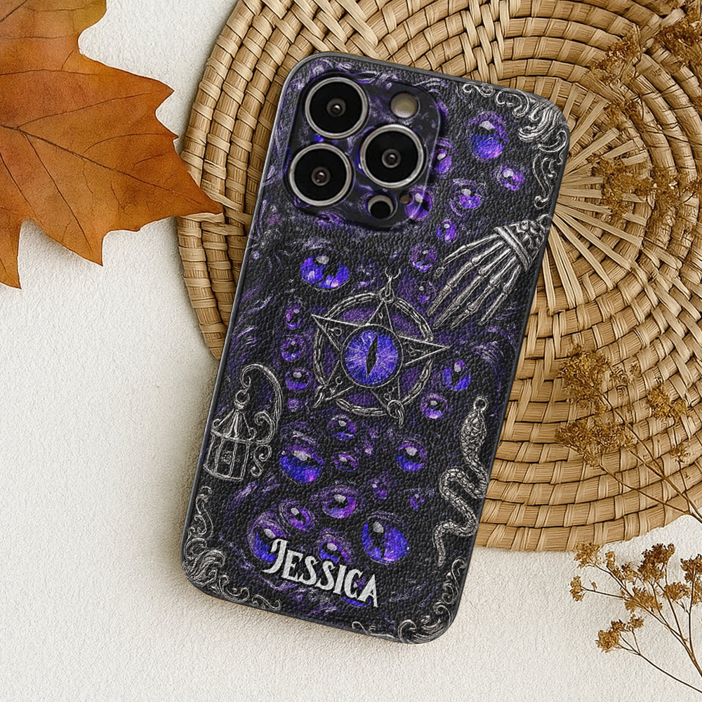 Gothic Pentacle Witchy Vibe - Personalized Witch Leather Phone Case