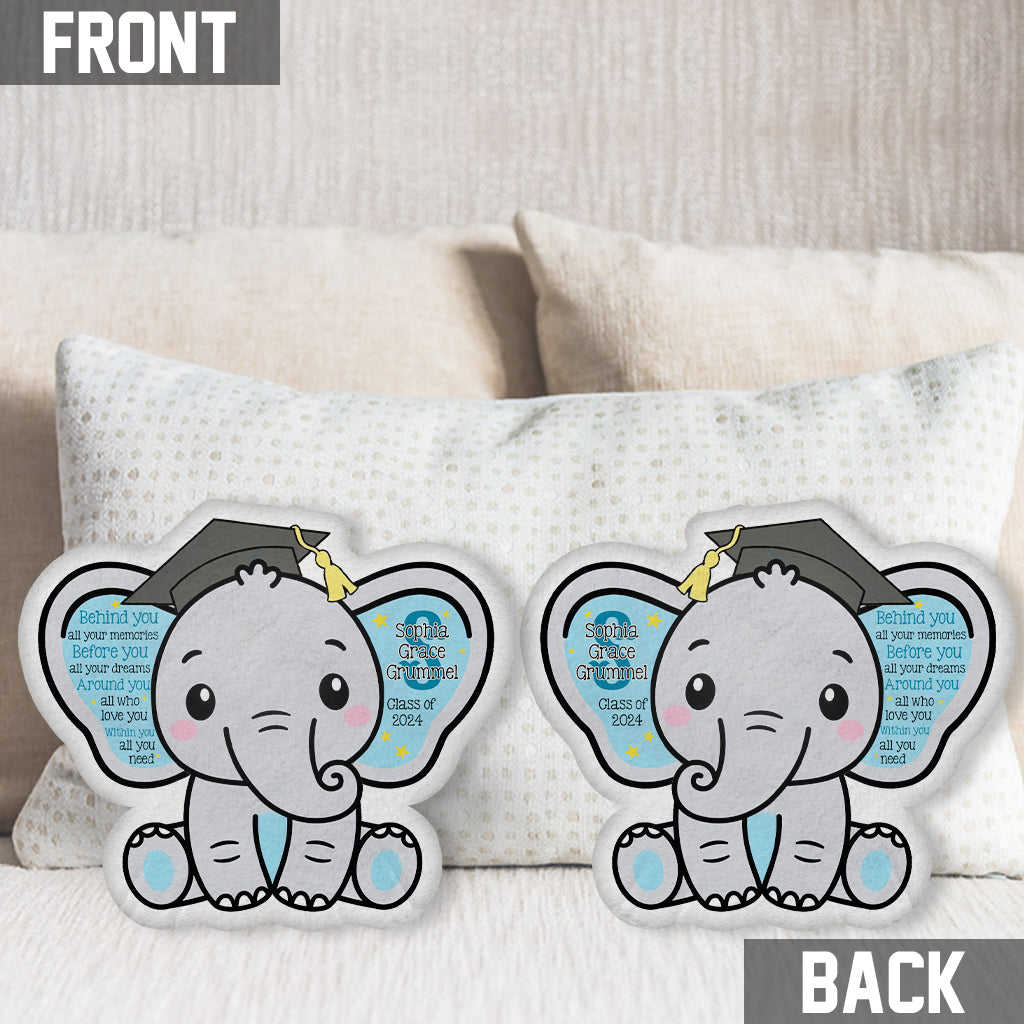 Graduation Elephant Behind You All Your Memories - Personalized Graduation Shaped Pillow