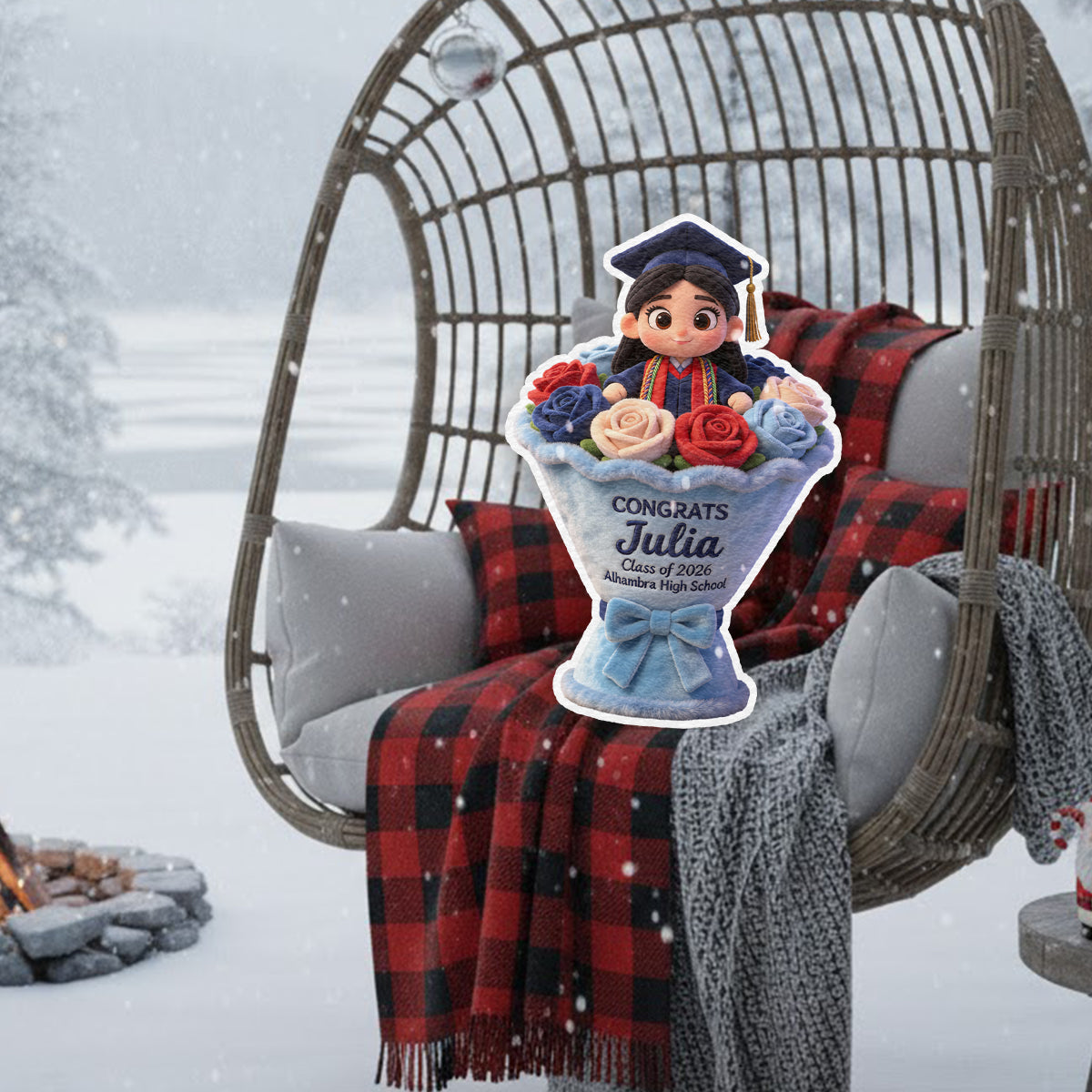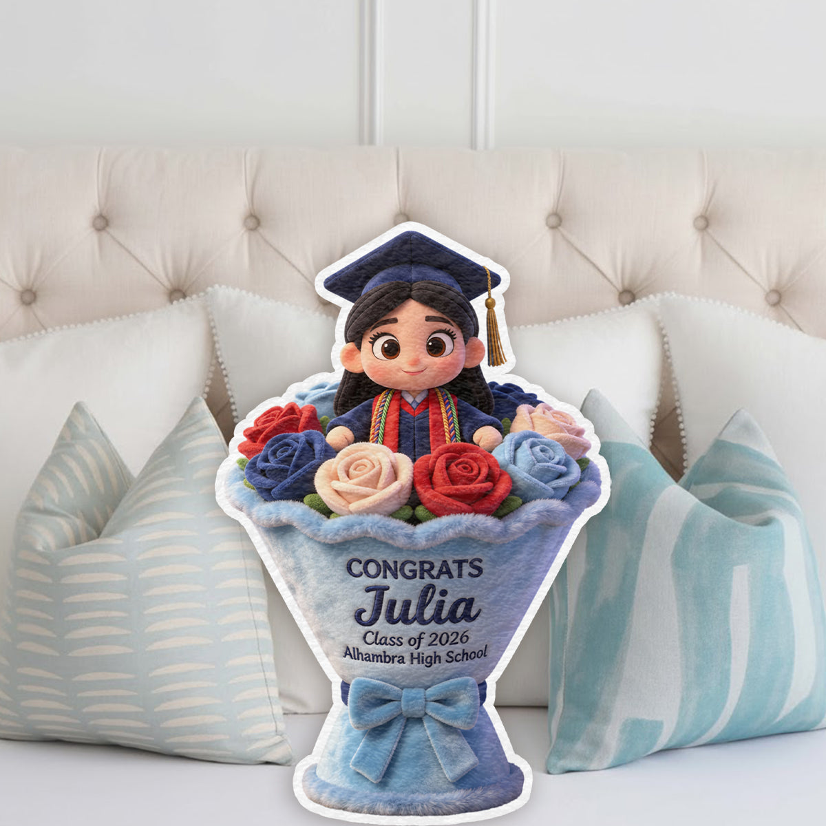Graduation Flower - Personalized Graduation Faux Fur Shaped Pillow