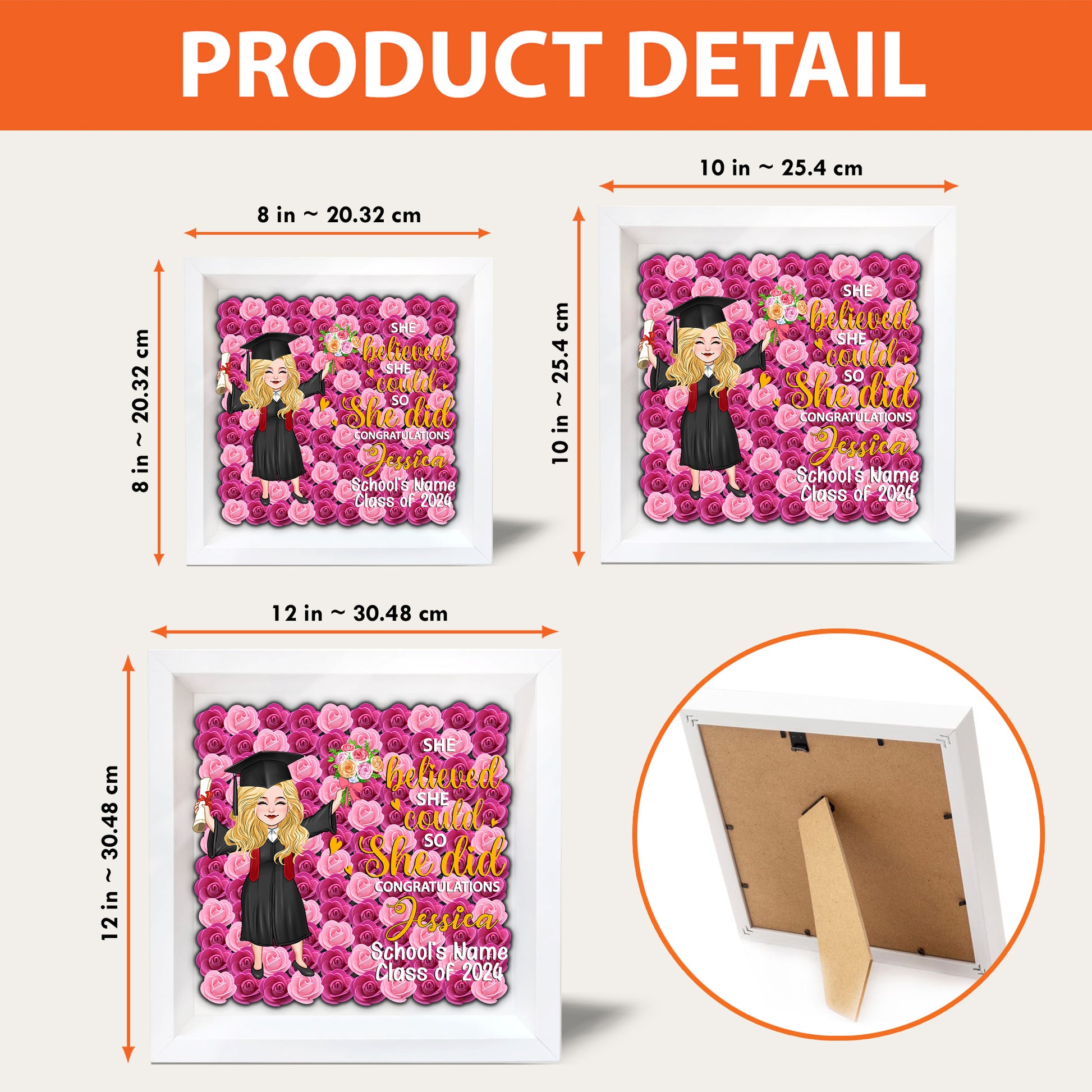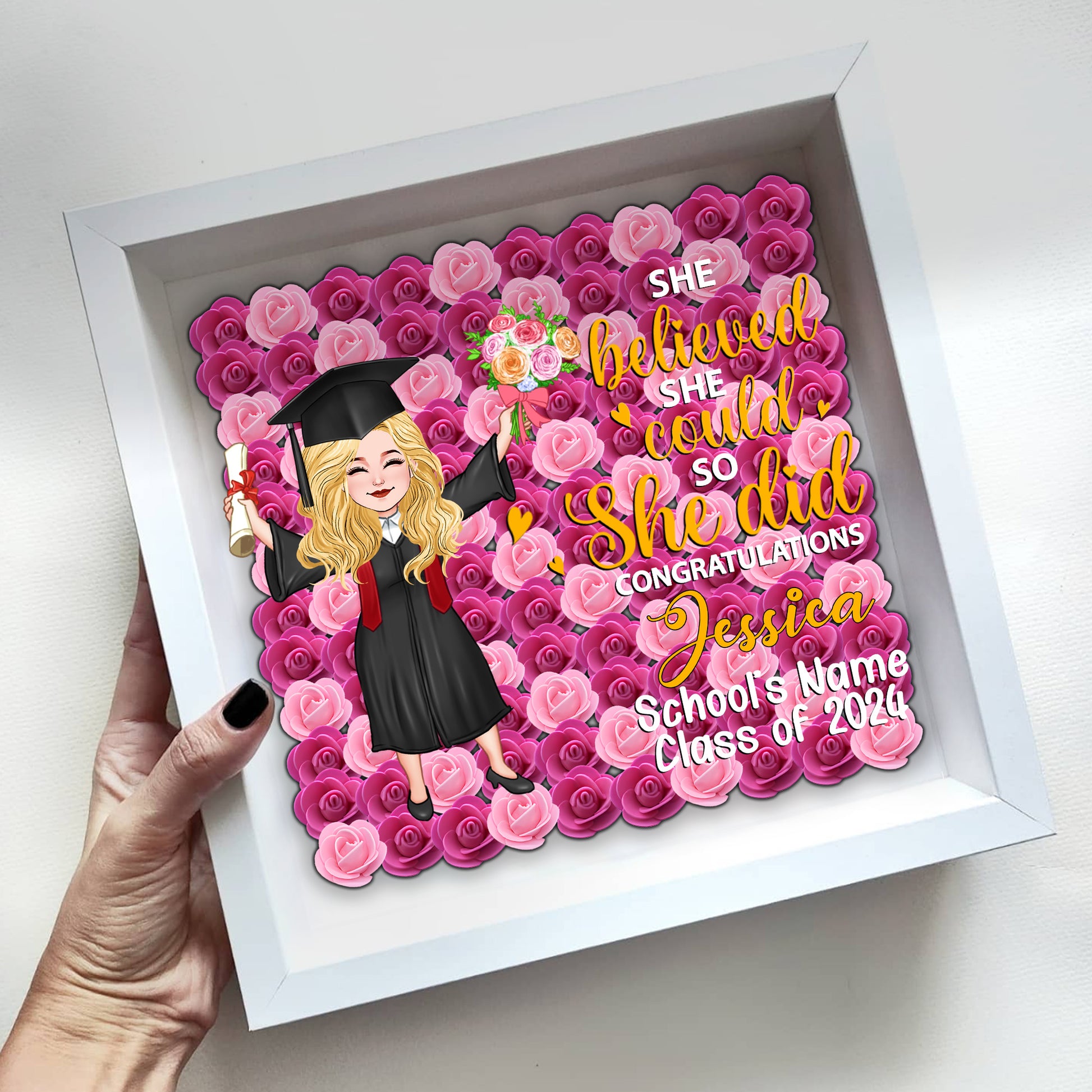 Graduation Girl 2024 - Personalized Graduation Custom Shaped Flower Shadow Box