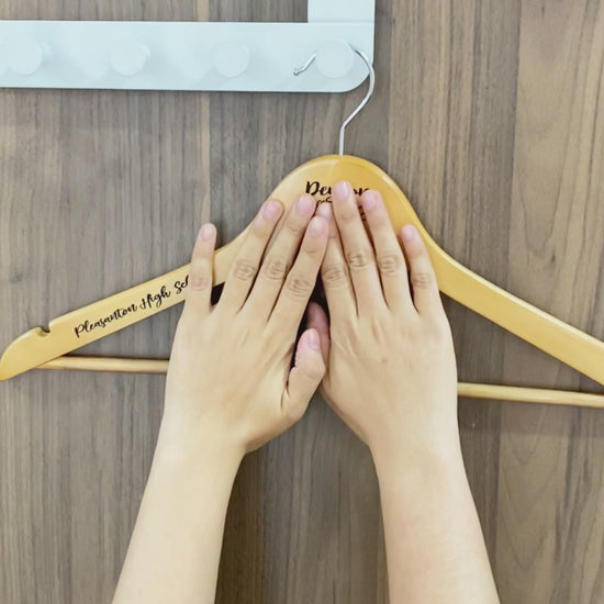 - Attention Seniors!! Give your cap & gown the honor that it's due by hanging it on this personalized cap & gown hanger. The hanger is personalized with a name and a class of graduation year. Keep your gown and cap together and in place with ease.