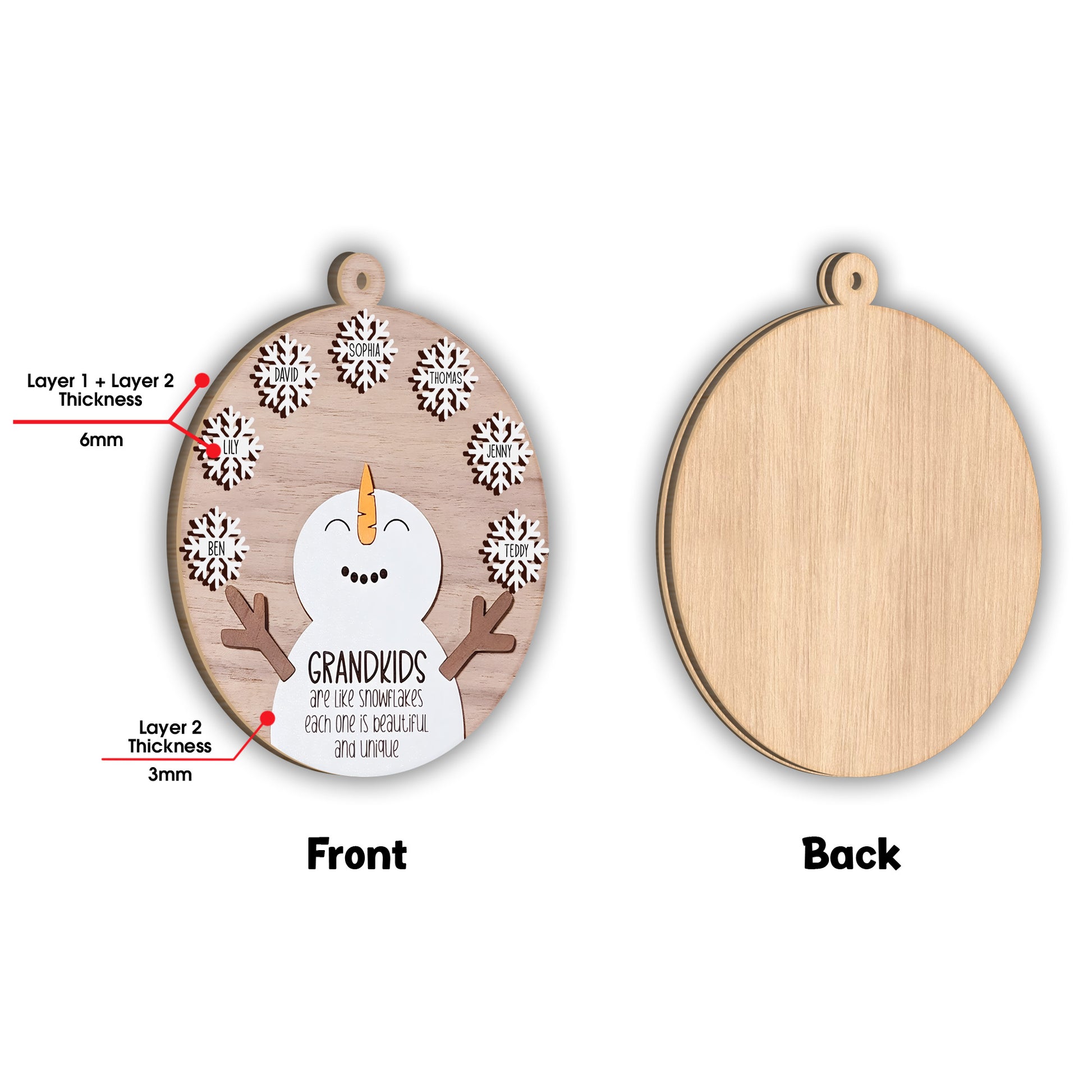 Grandkids Are Like Snowflakes - Gift for grandma - Personalized 2 Layered Piece Ornament
