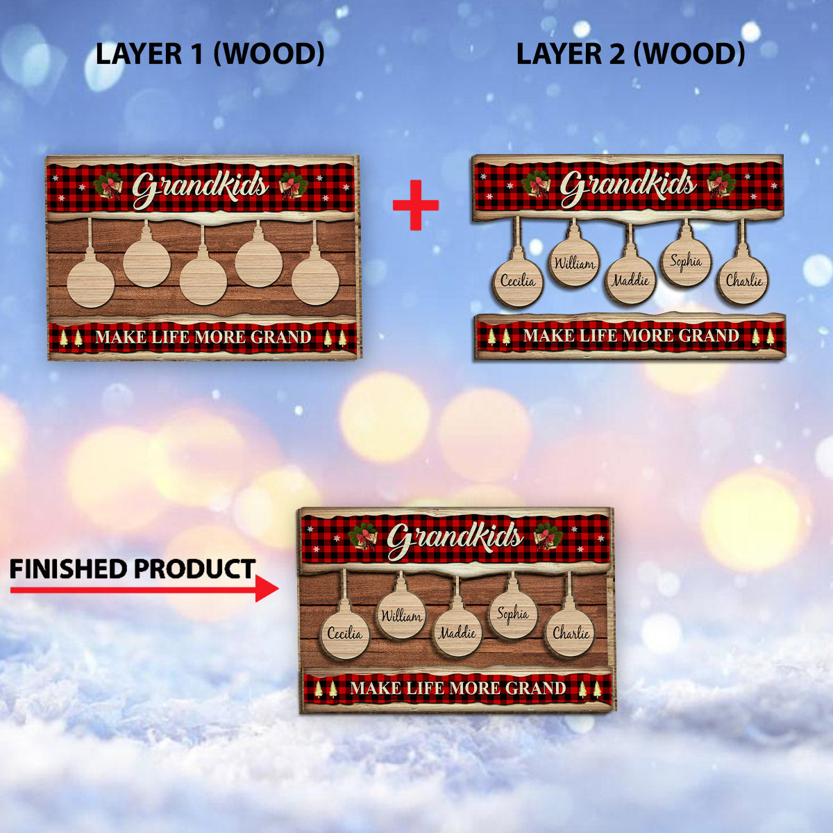 Grandkids Make Life More Grand - Personalized Grandma 2 Layered Wood Sign / Wood Plaque