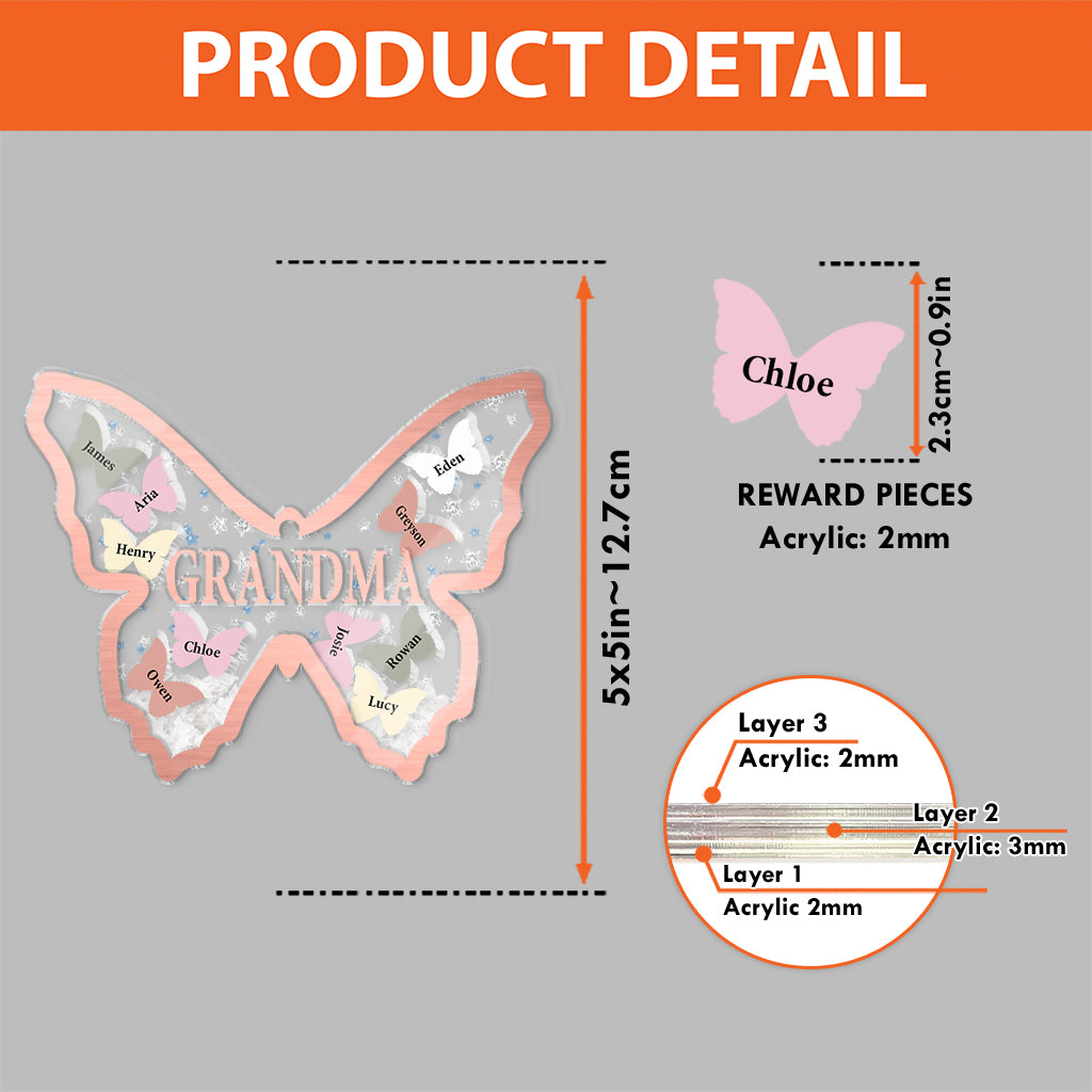 Grandma And Grandchildren Butterflies - Gift for grandma - Personalized 3 Layered Shaker Ornament